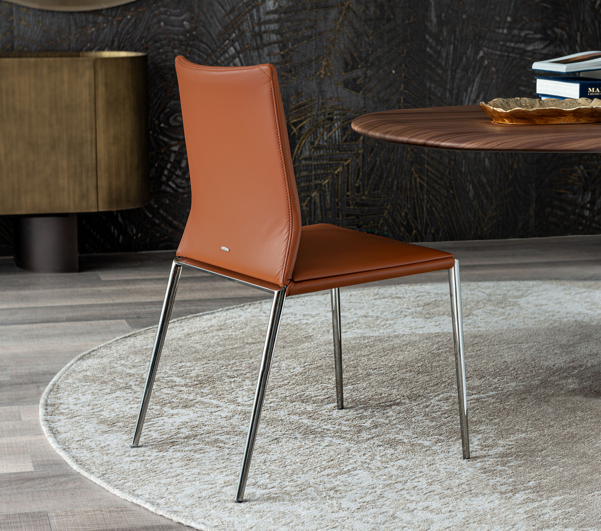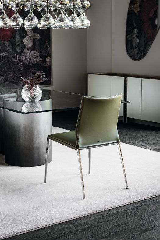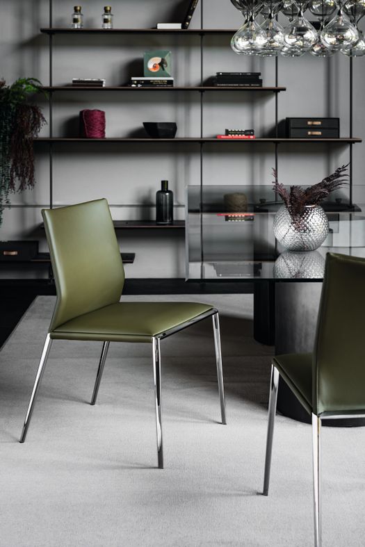 La nuova finitura Cromo crea giochi di luce e riflessi che ne esaltano la struttura e definisce il carattere dello spazio nel quale l'arredo viene inserito. Quella che potrebbe sembrare una finitura “del passato” diventa la chiave per interpretare l’abitare contemporaneo. Oggi proposta su molte delle sedie con gambe in metallo, la finitura Cromo offre nuove possibilità estetiche nel segno della continuità stilistica.