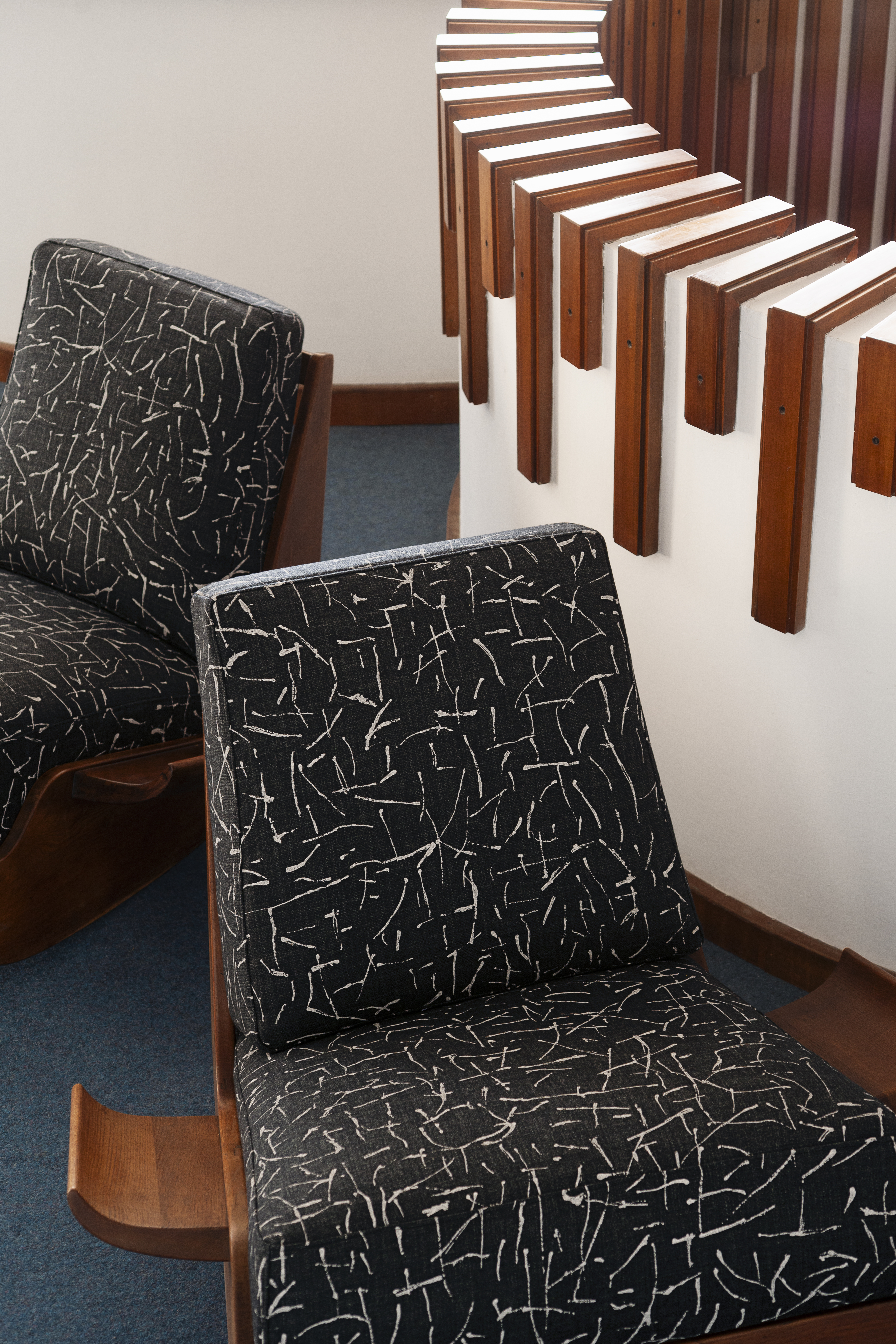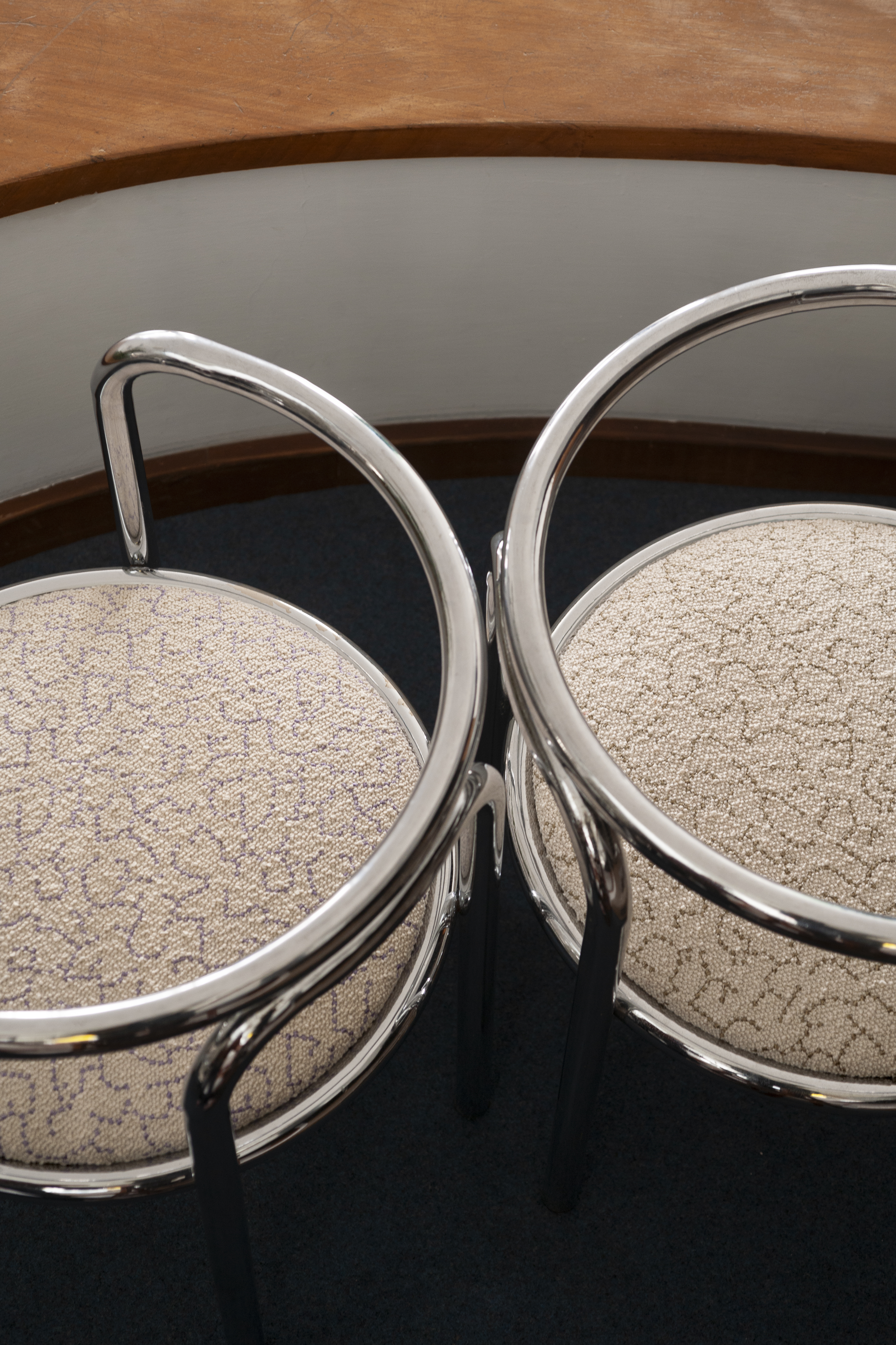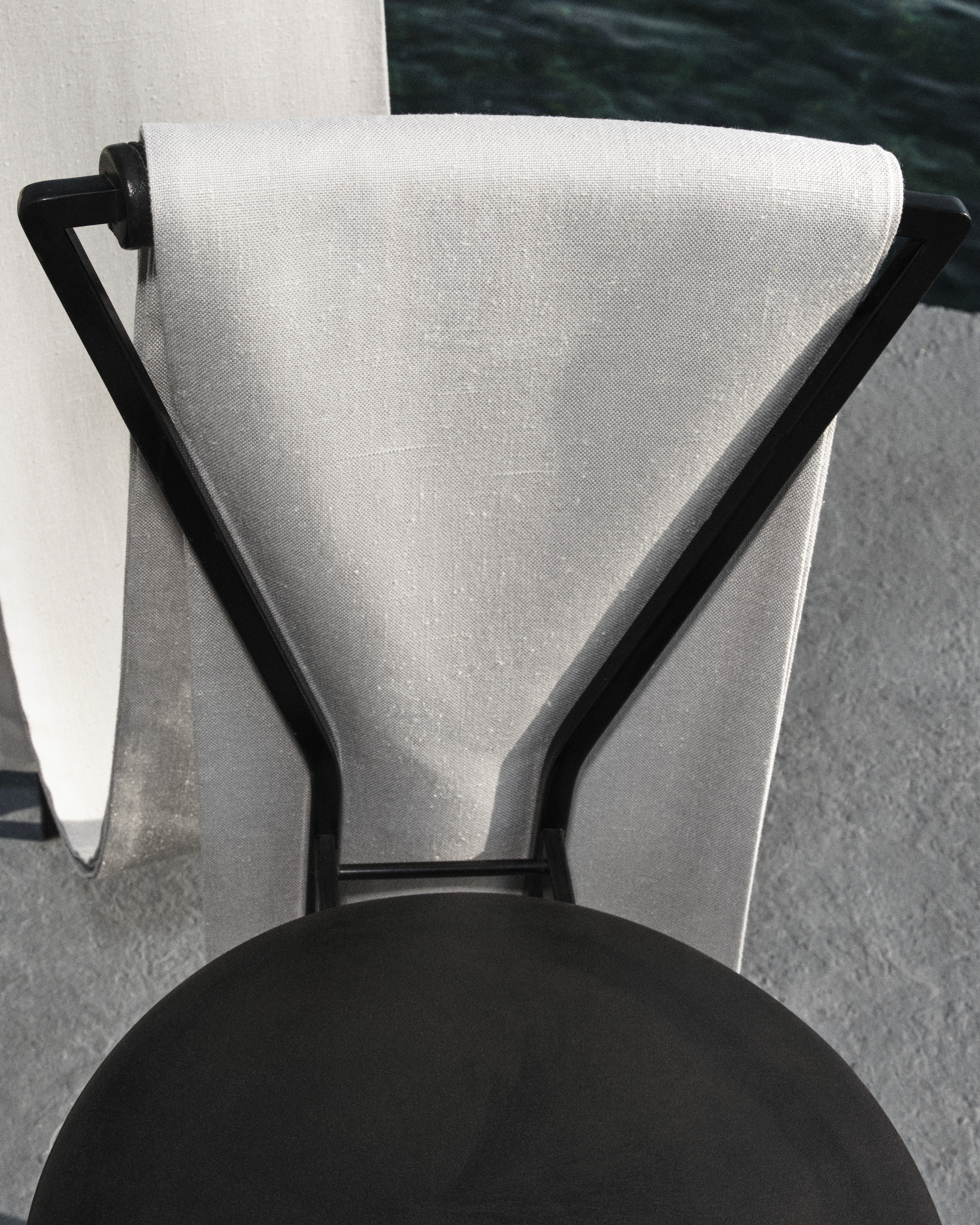 Le Apt Embroideries, infine, ampliano l’orizzonte del tessuto ignifugo, portandolo dove non era mai arrivato. Il nobile ricamo minuzioso si reinventa in materiali resistenti, durevoli, lavabili. Geometrie, nastri sinuosi e greche decostruite animano un senso di tridimensionalità.