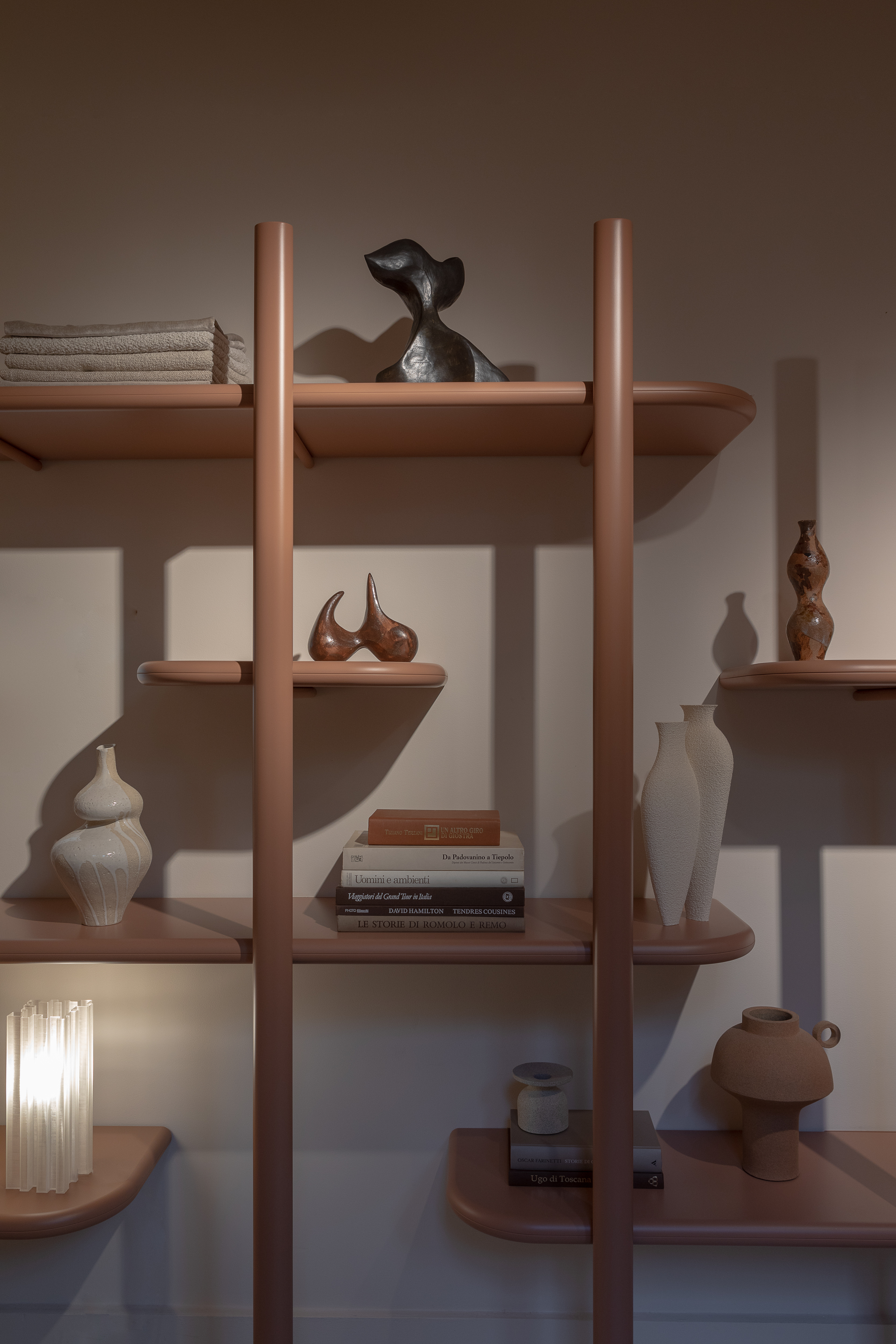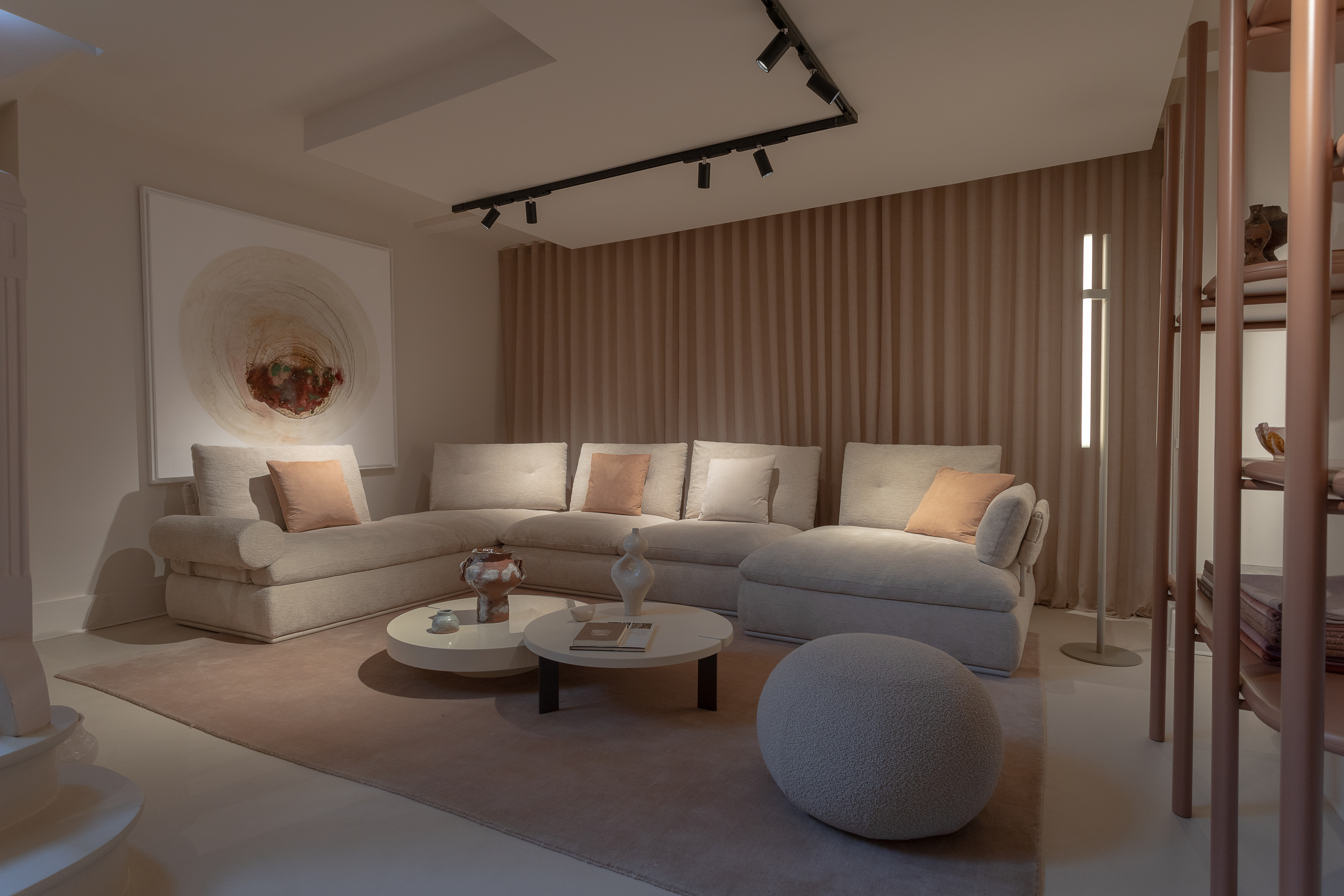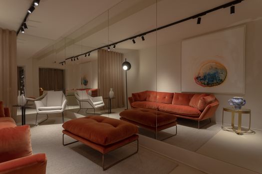 Al piano interrato, il nuovo divano Land e la libreria Anam a parete introducono soluzioni versatili, pensate per una progettazione modulare altamente personalizzabile. Il divano Metis di Nicola Pavan e l’iconico New York Suite offrono invece proposte più compatte, ideali per creare angoli raccolti e accoglienti, capaci di adattarsi con eleganza a ogni spazio.