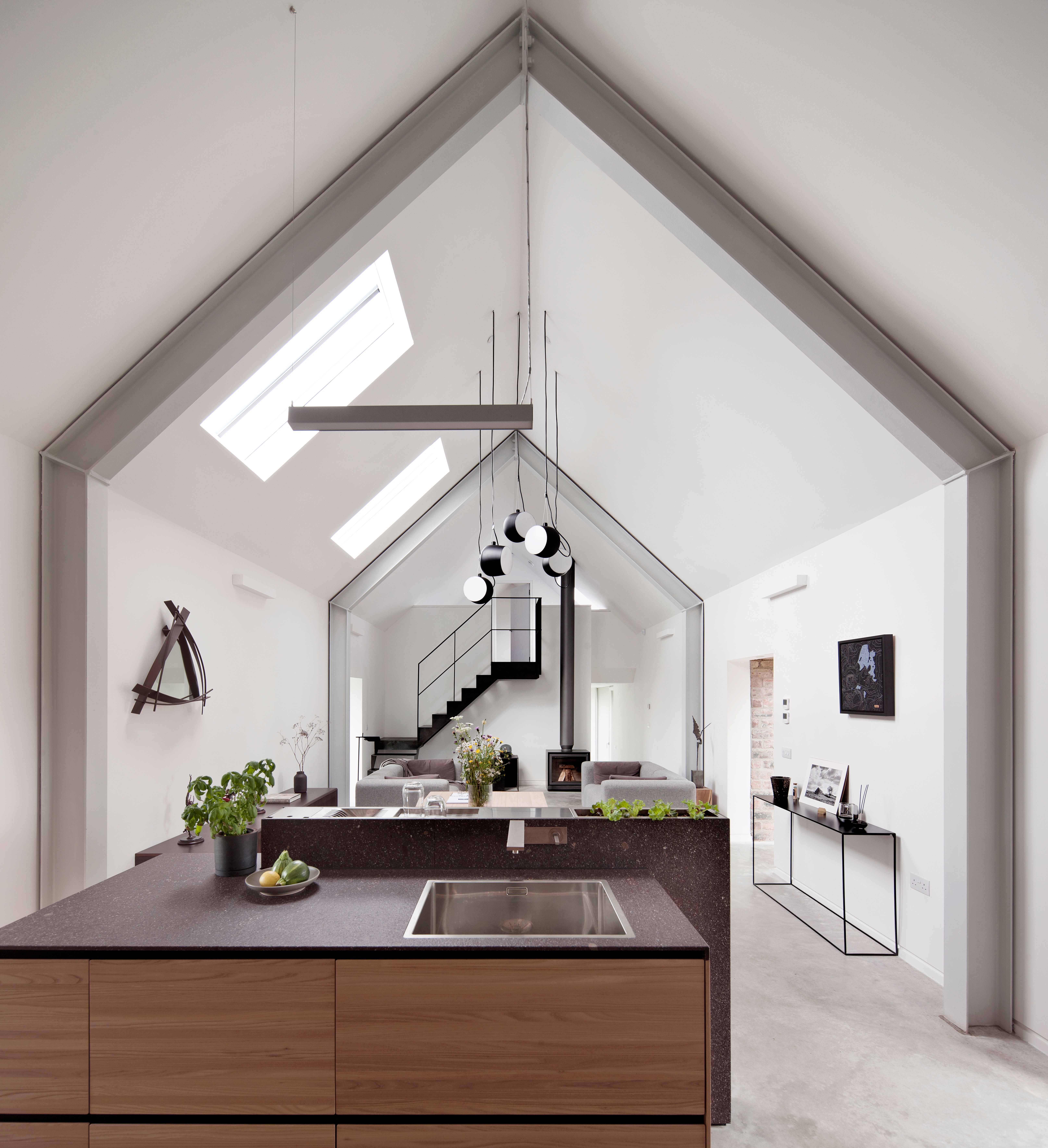 In Scozia, Cuddymoss di Ann Nisbet Studio (pp. 8-19) indaga il tema della stratificazione storica. La documentazione fotografica mostra un nuovo volume ligneo che si innesta con discrezione nei resti in pietra dell’edificio rurale, ridisegnando soglie e proporzioni. L’intervento opera sulla continuità e rivela come la cucina diventi parte integrante della ricostruzione spaziale, contribuendo alla definizione del paesaggio domestico.
