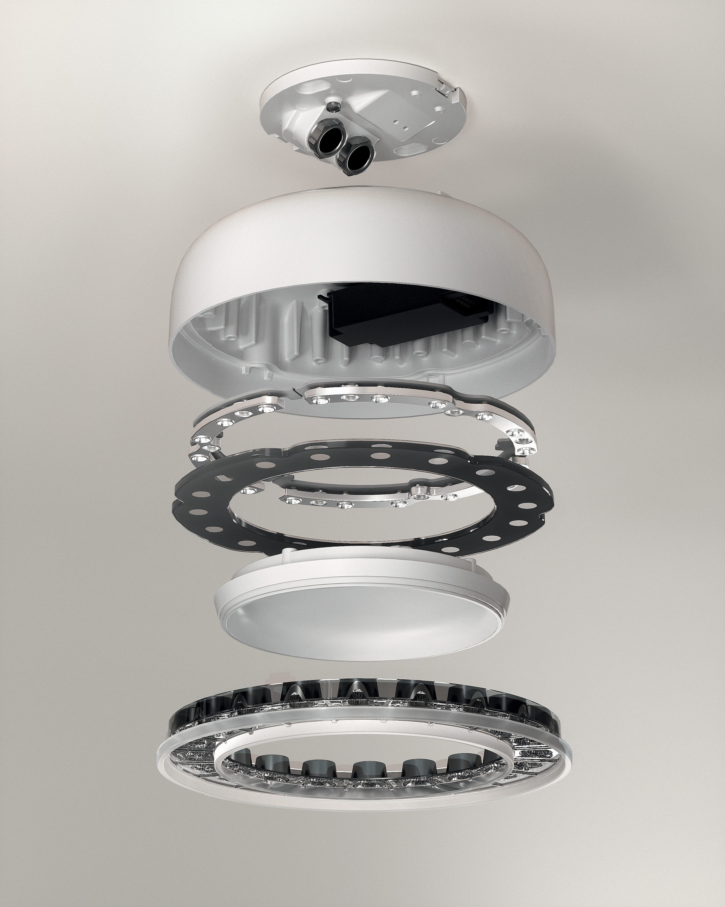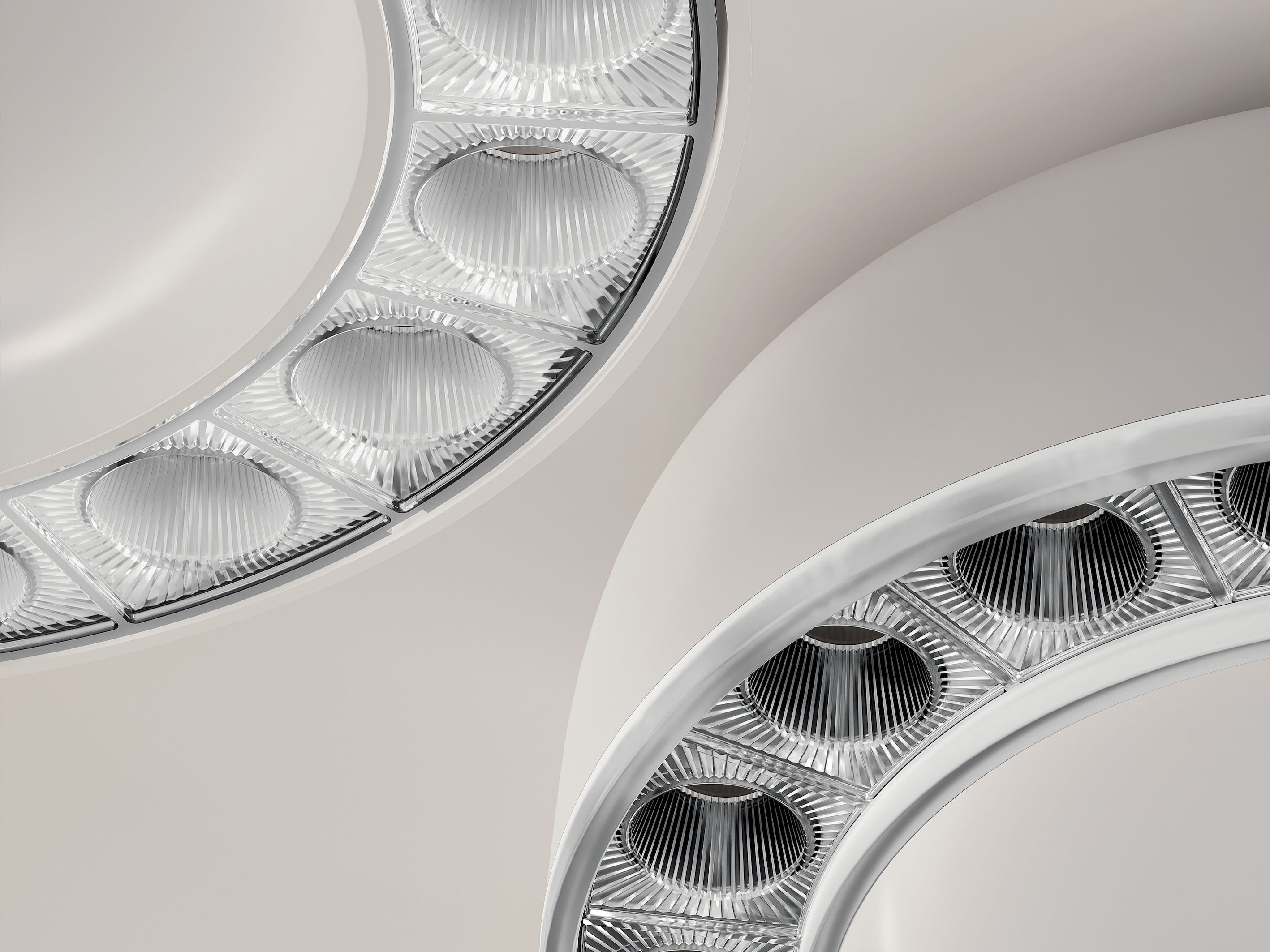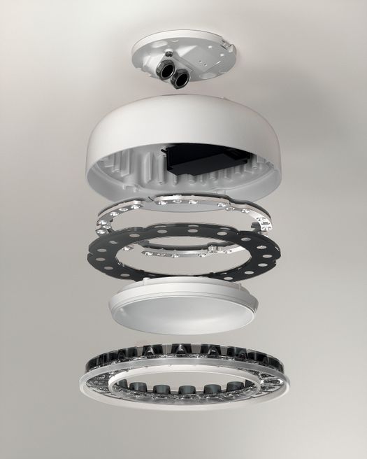 Le tecnologie ottiche interne garantiscono comfort visivo, precisione e qualità senza compromessi. Lungo la corona circolare, l'ottica miniaturizzata Opti Diamond emette una luce soffice e uniforme. La tecnologia brevettata crea l'effetto Space, offrendo brillantezza, comfort visivo e alta efficienza sia in ambienti interni che esterni. Disponibile in bianco trasparente o nero trasparente, nelle versioni a filo e con cornice, mantiene un aspetto distintivo anche quando è spento.