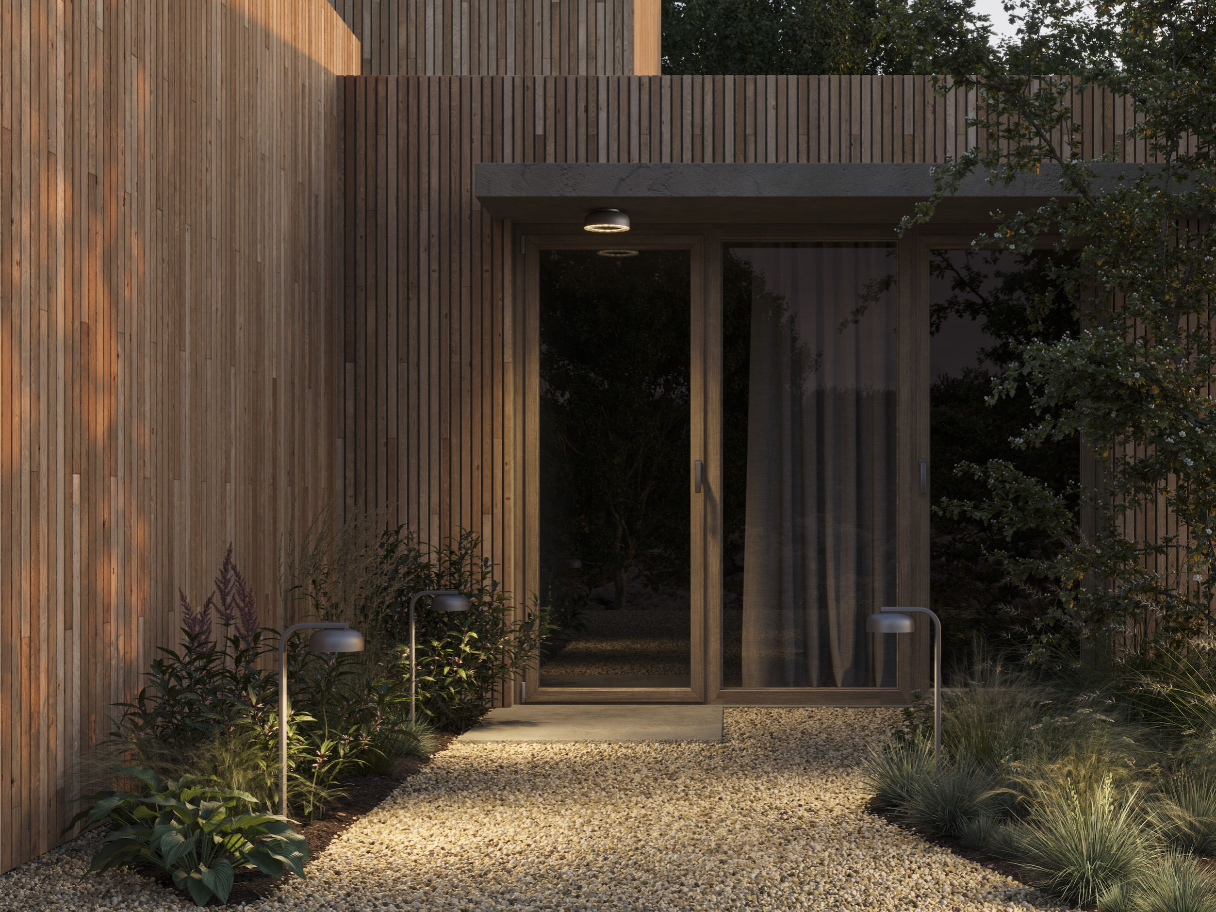 L'ottica Lens amplia le possibilità di applicazione di Ribeira. La variante No Dot, disponibile nella versione a telaio, crea un anello di luce continuo, ideale per ambienti hospitality e residenziali, combinando comfort visivo e alte prestazioni. La lente Opti Smart, disponibile nella versione a filo, consente installazioni in giardini, vialetti e camminamenti con distribuzioni asimmetriche (anteriore e laterale), garantendo sempre eleganza e funzionalità.