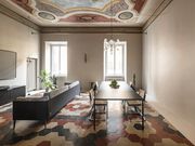 Ogni intervento è calibrato per dialogare con il contesto originario. I pavimenti in cotto sono stati restaurati con levigature e trattamenti minimi, lasciando intatte le geometrie a tre tonalità (terracotta, tortora, antracite) che variano da stanza a stanza. Le pitture a tempera dei soffitti sono state valorizzate con puliture e reintegrazioni cromatiche, restituendo luminosità e profondità agli ambienti.