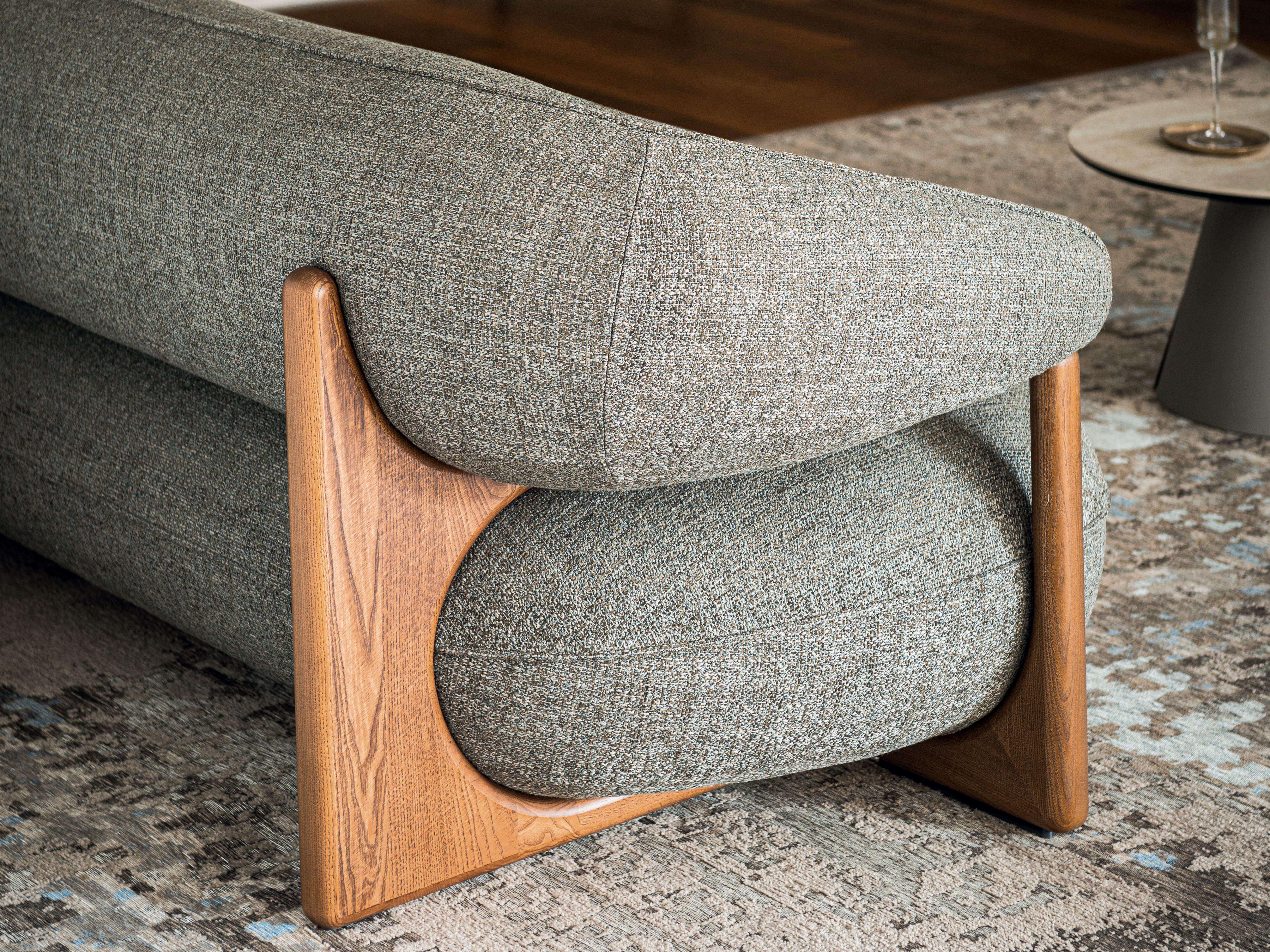 Nella versione divano, Ruby conserva la sua ispirazione scandinava: la struttura portante in legno, in continuità con l’alter ego poltrona, conferisce solidità e personalità al nuovo arredo. Un materiale pregiato e durevole capace di creare l’effetto cocoon, accogliendo i morbidi cuscini imbottiti in poliuretano espanso ad alta densità.