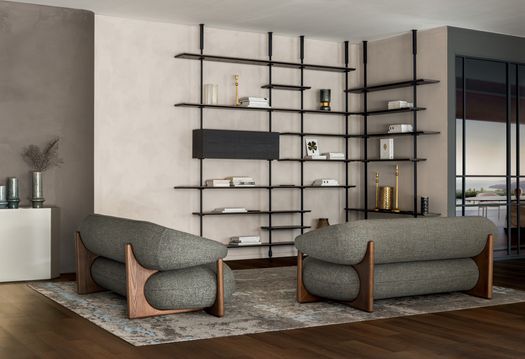 Divano e poltrona Ruby condividono un pensiero coordinato e complementare di forme e linguaggio, garantendo la massima compatibilità in termini di elementi strutturali, dettagli, caratteristiche estetiche, rivestimenti e materiali.