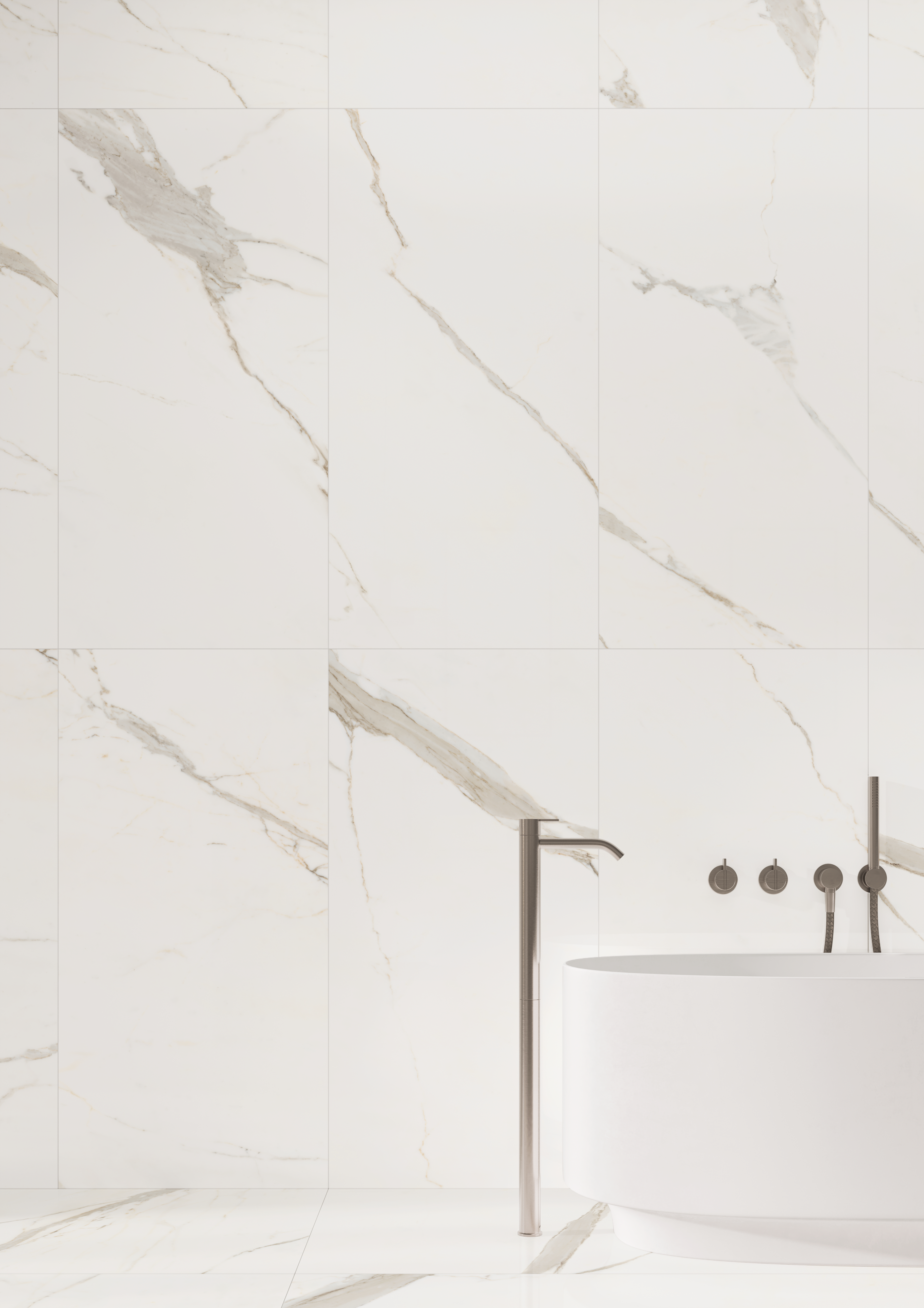 Il gres porcellanato interpreta l'iconico Marmo bianco di Carrara