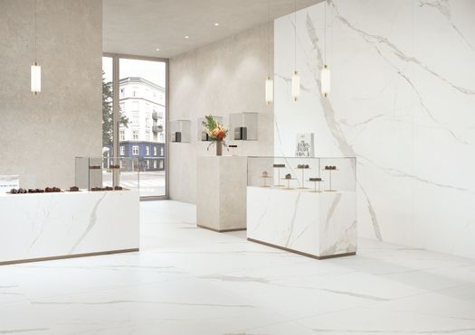 09/02/2026 - La purezza del Marmo bianco di Carrara ispira le nuove superfici in gres porcellanato effetto marmo Ceramiche Keope della collezione Versilia, serie che riproduce le venature e la forte carica simbolica del materiale lapideo. I rivestimenti evocano alcune delle varietà più pregiate estratte dalle cave delle Alpi Apuane: Statuario Extra, Calacatta Borghini e Calacatta Michelangelo.