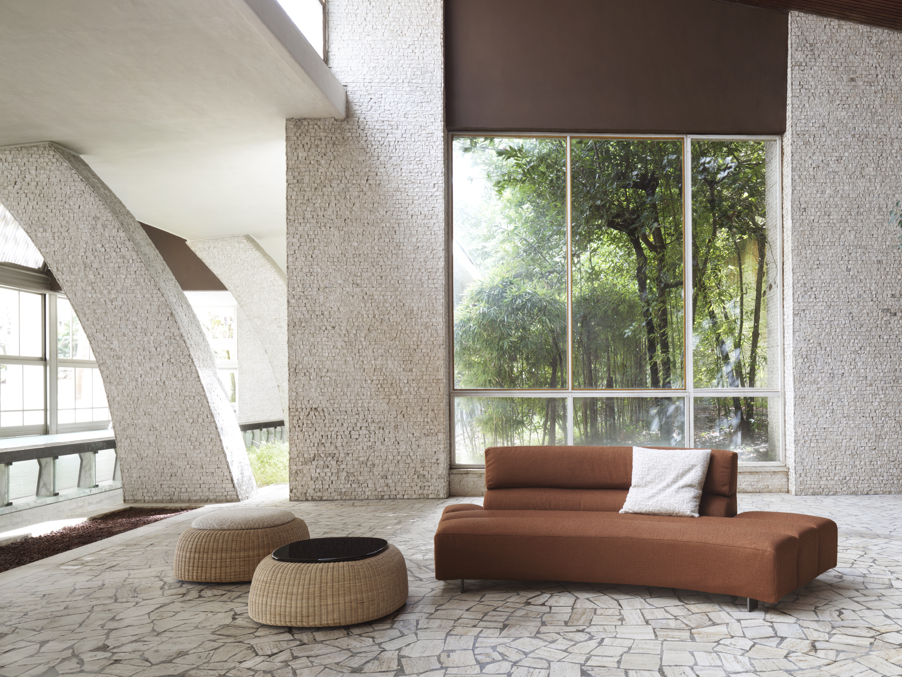 Pensato per contesti residenziali e contract, Phil è un rifugio avvolgente dalla silhouette curvilinea: nella lunghezza può abbracciare più persone, ridefinendo il rapporto tra arredo, spazio e uomo.