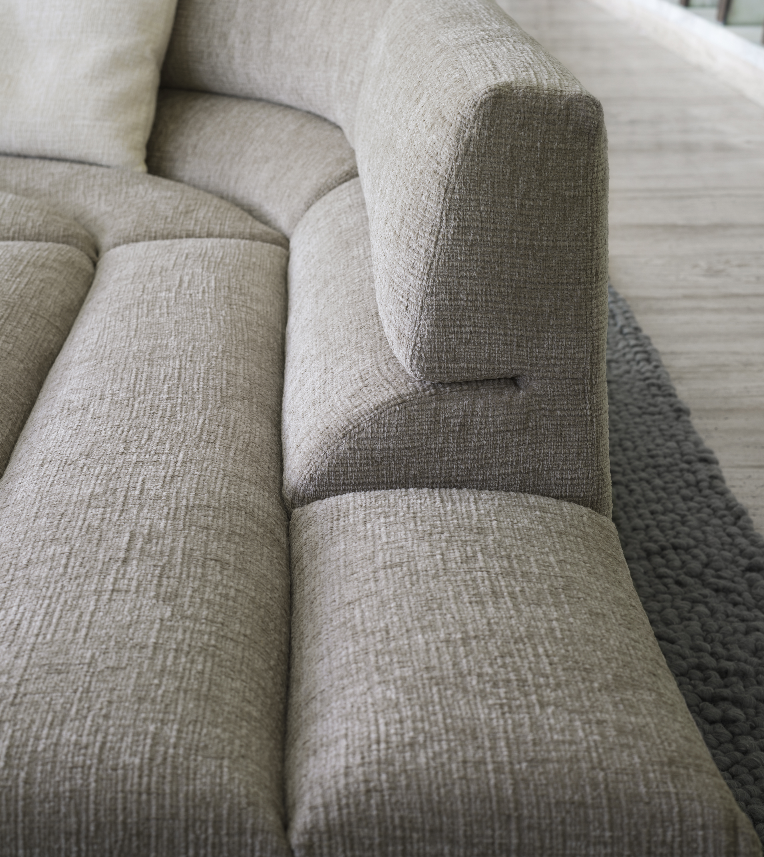 Sedute generose, morbidi schienali e braccioli sagomati: il nuovo divano Frigerio