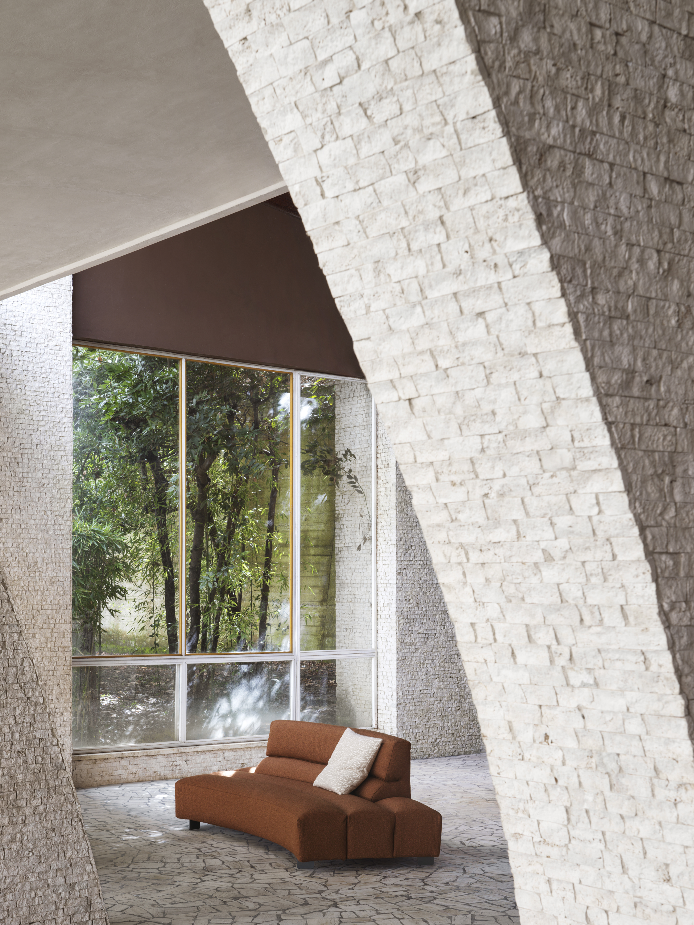 Il divano Phil è parte della collezione di arredi MaterialForm: i volumi si ammorbidiscono e l’atmosfera si fa eclettica, dando vita ad ambienti che coniugano intimità e socialità in un equilibrio armonioso.