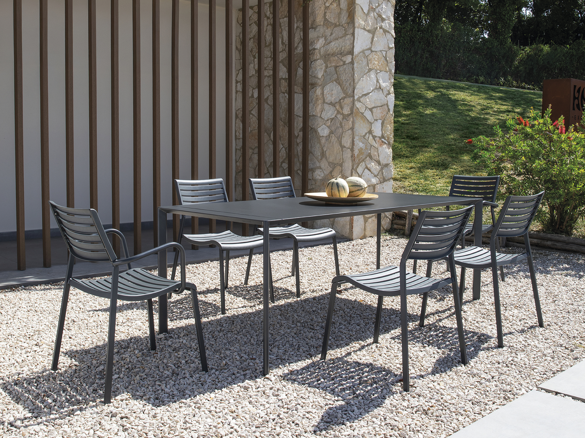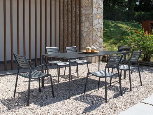 La resistenza e la capacità di adattamento della Verdea rivive nell'omonima collezione in alluminio di Vermobil, pensata per durare, evolversi e accogliere la convivialità