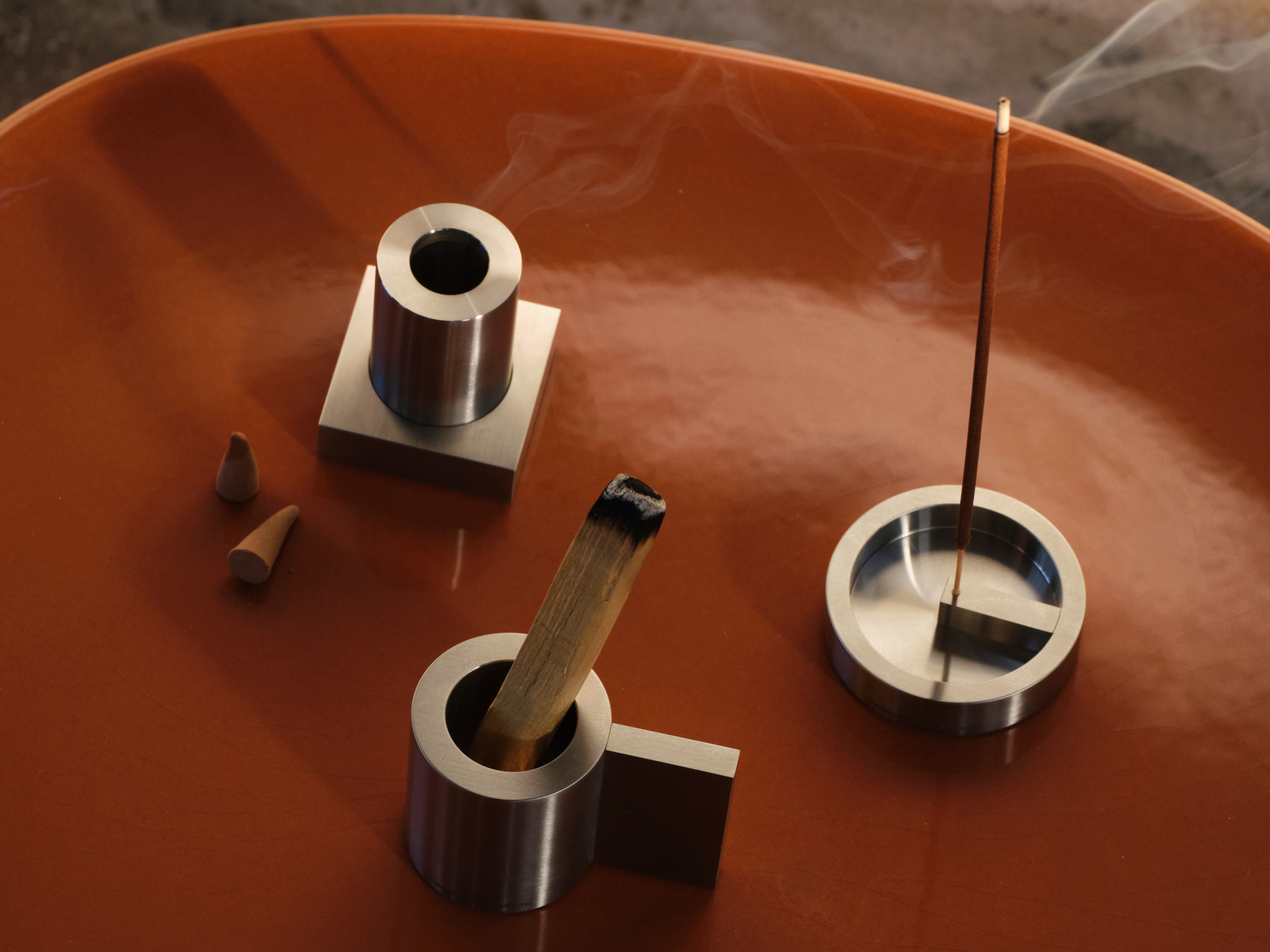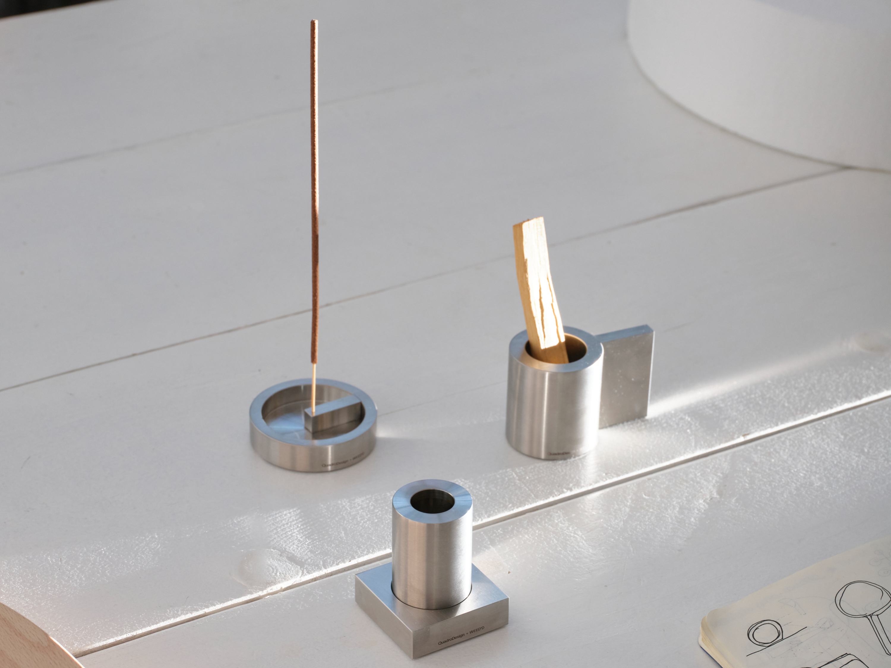 Dalla collaborazione tra QuadroDesign e il brand milanese Weed’d nasce una collezione di tre oggetti in acciaio inossidabile pensati per la combustione di incensi e legni aromatici