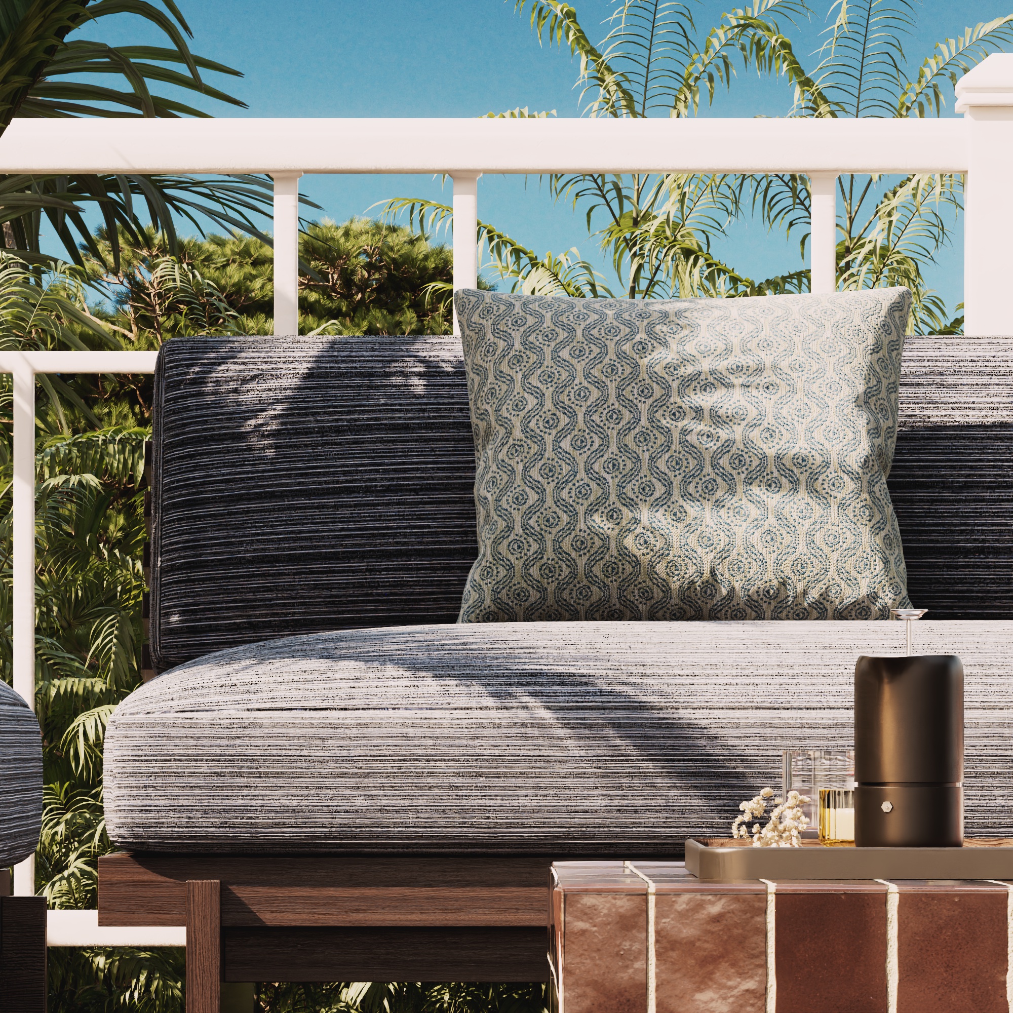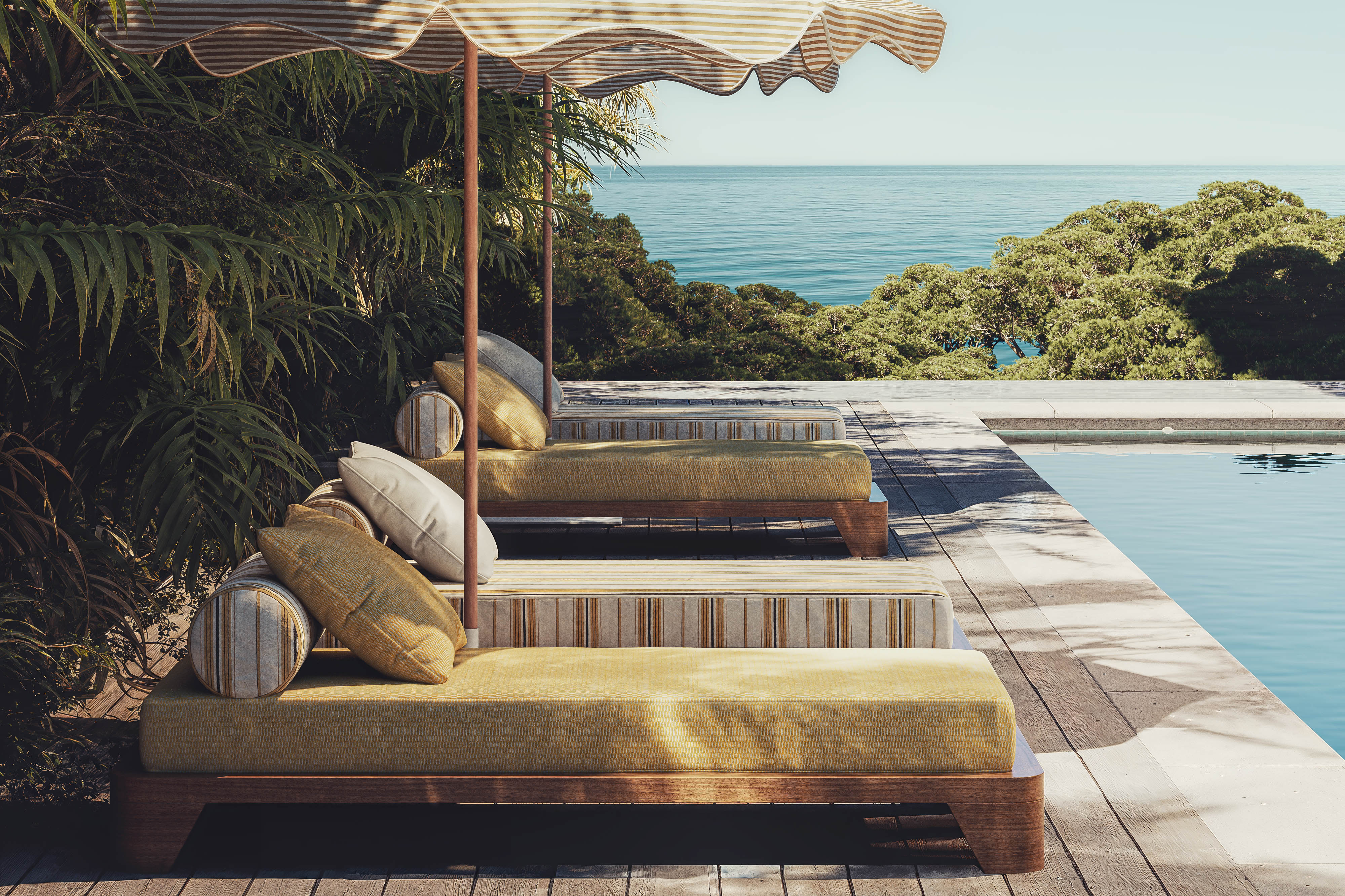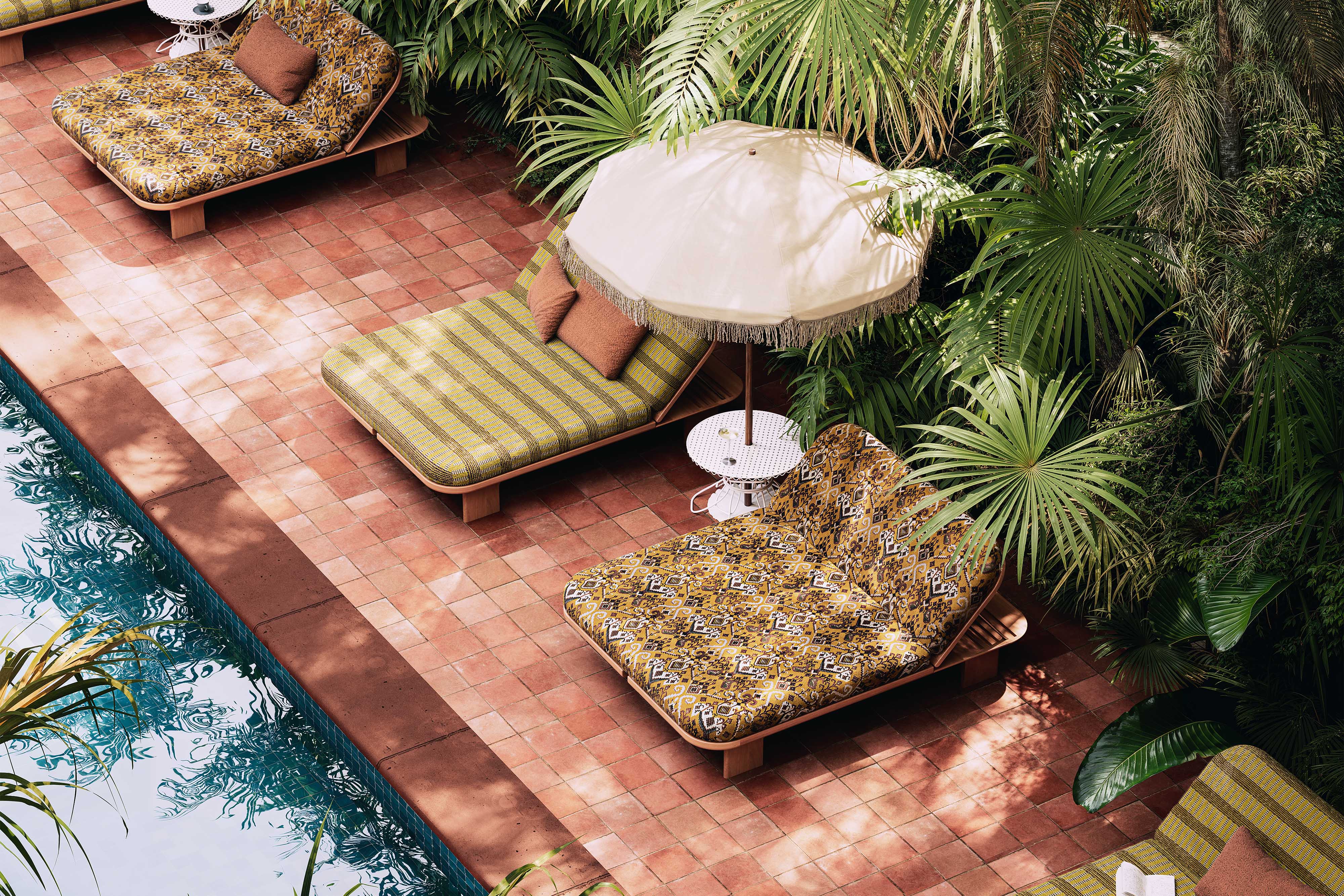 Îles du Vent è la prima linea di tessuti in/outdoor firmata Lelièvre Paris: un omaggio alla poesia dell'isola, tra creatività decorativa e tecnicità outdoor