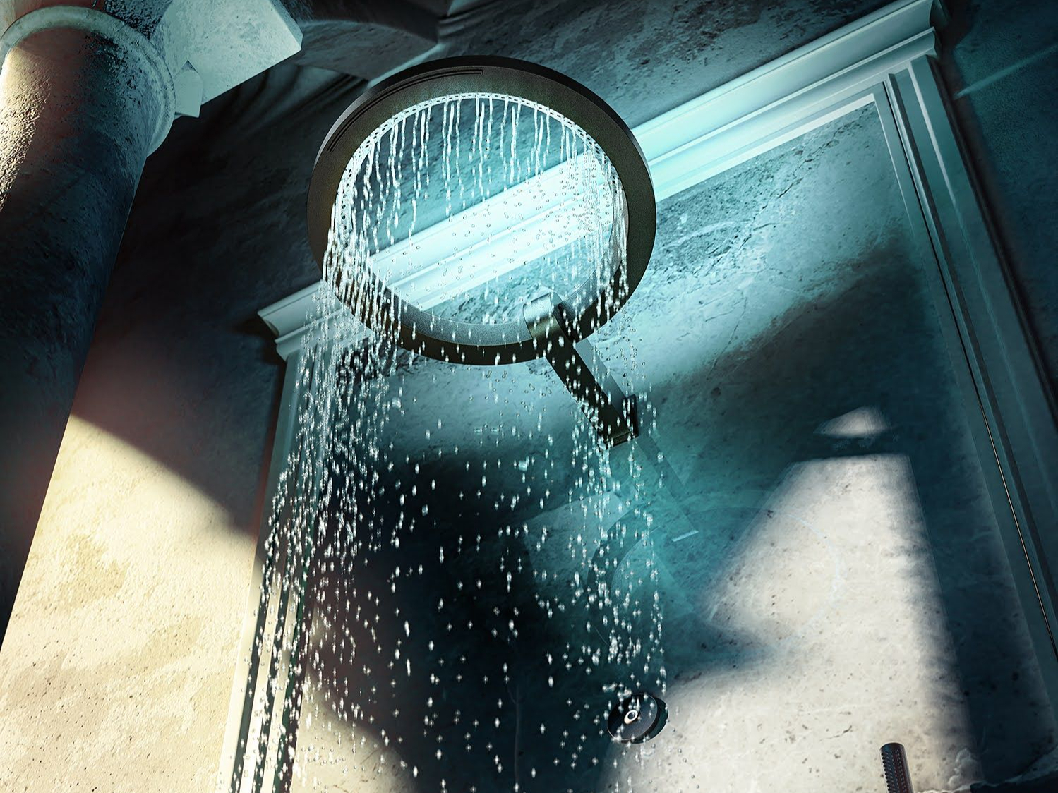 Ne è un esempio Ametis, un soffione ad anello in acciaio inox dalla fluidità scultorea che eroga un flusso a cascata e cela nel suo spessore un fascio LED RGB per la diffusione indiretta di luce colorata, con un rilassante effetto cromoterapico.