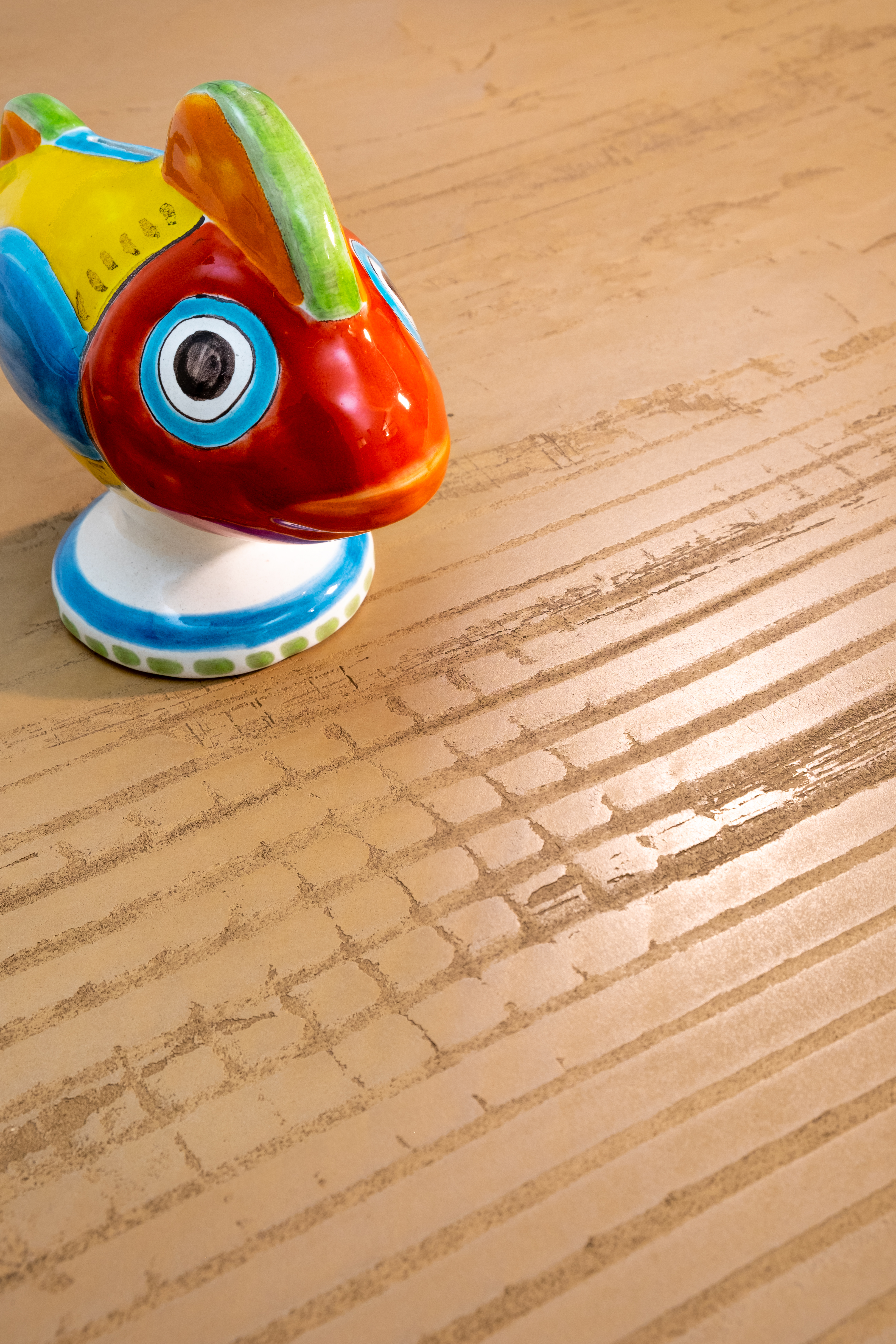 Le superfici diventano stratificate, vibranti, percorse dalla luce, capaci di cambiare durante il giorno e di restituire allo spazio una dimensione quasi paesaggistica. Una visione che riflette il modo in cui Novacolor concepisce il design: come esperienza sensoriale, narrativa, emozionale.