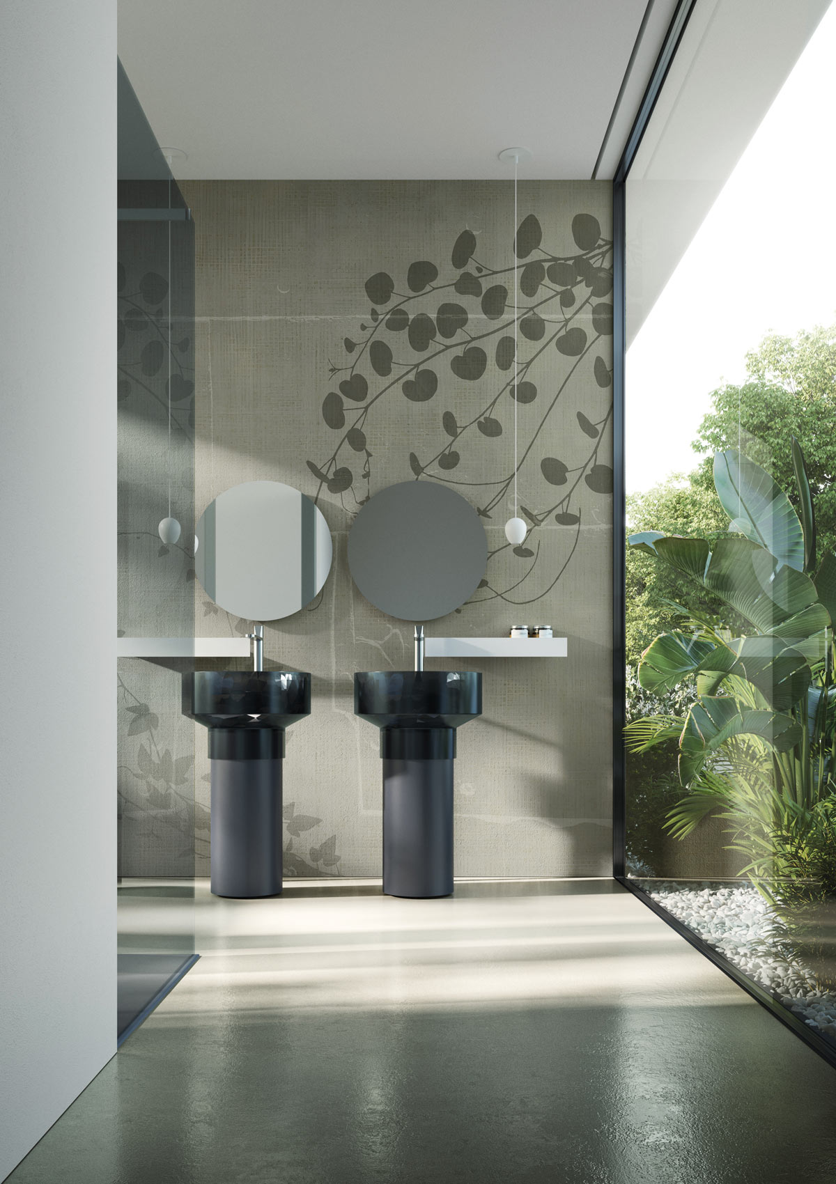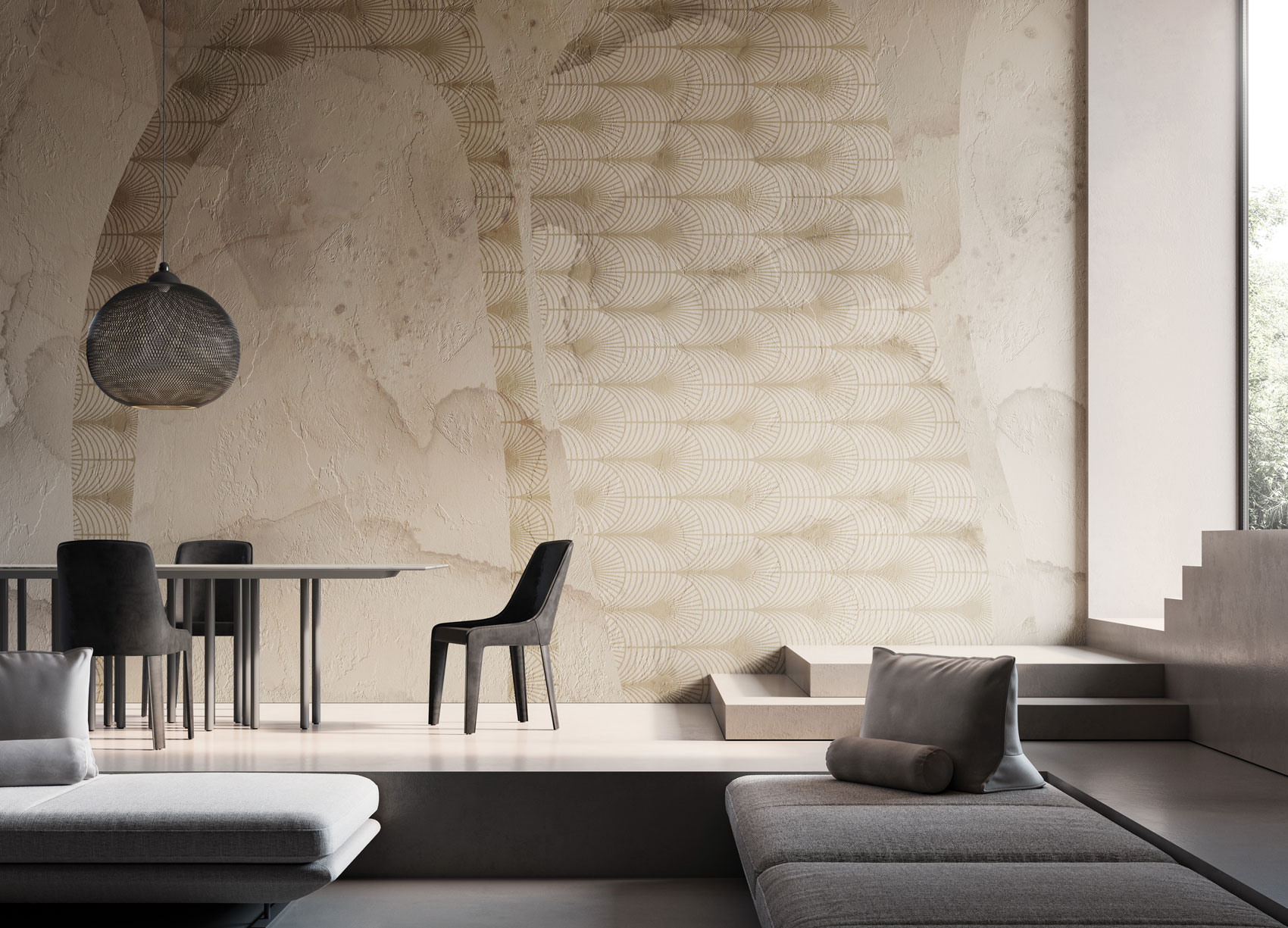 Ogni grafica della collezione I.magine è proposta in tre varianti colore, discrete ed essenziali, studiate per adattarsi a contesti differenti. Le declinazioni cromatiche ampliano la libertà compositiva e le possibilità di abbinamento, permettendo di modulare atmosfera e intensità senza perdere coerenza visiva. Pur cambiando tono e percezione, le superfici mantengono una continuità estetica che rende la collezione estremamente versatile. Le sfumature impalpabili e i colori neutri permettono di costruire ambienti equilibrati, mai eccessivi, senza rinunciare a un’identità definita.