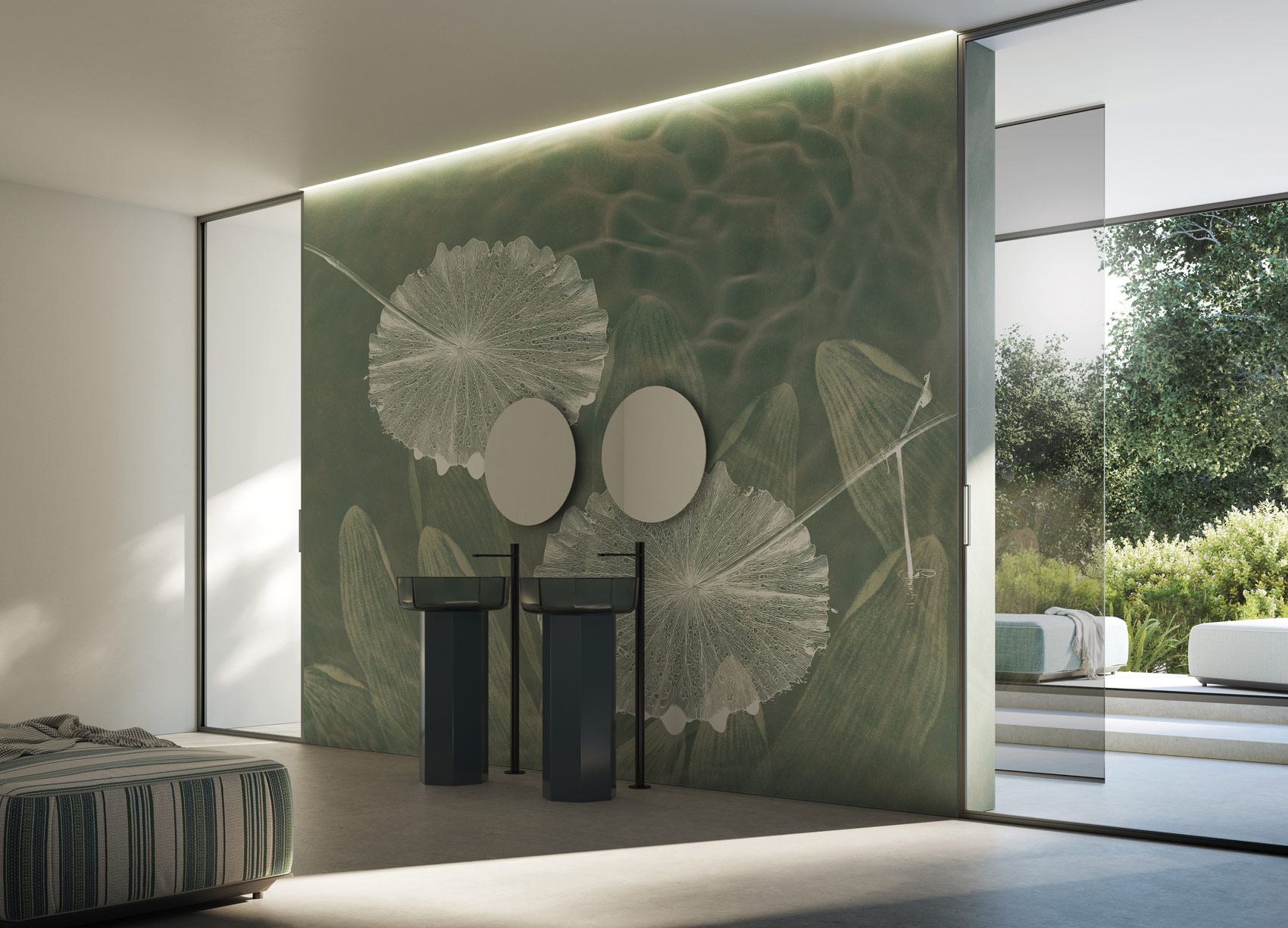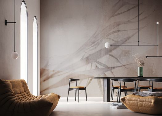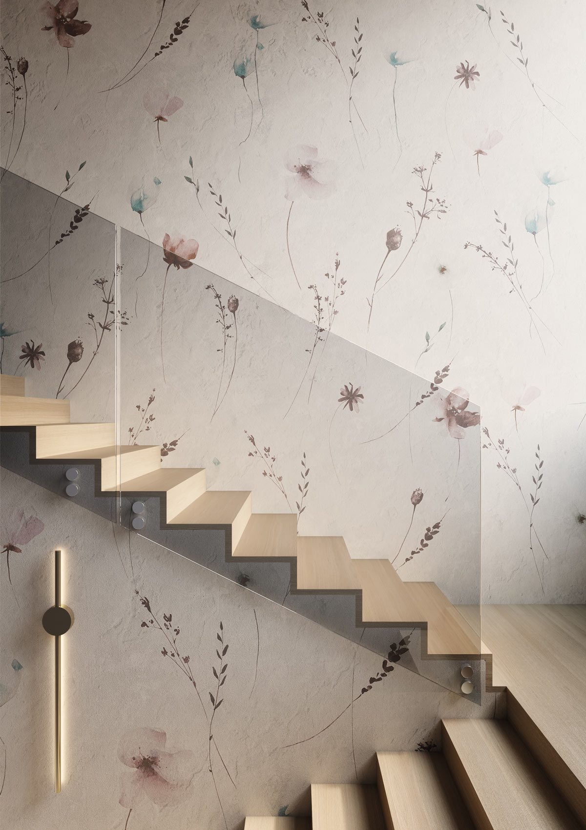 Rispetto alle grafiche più audaci delle collezioni precedenti, I.magine si distingue per una prevalenza di colori delicati, ispirati alla natura e ai paesaggi. Una scelta cromatica che privilegia la misura e la leggerezza, rendendo questa carta da parati particolarmente adatta a progetti contemporanei in cui l’armonia complessiva dello spazio è l’elemento centrale.