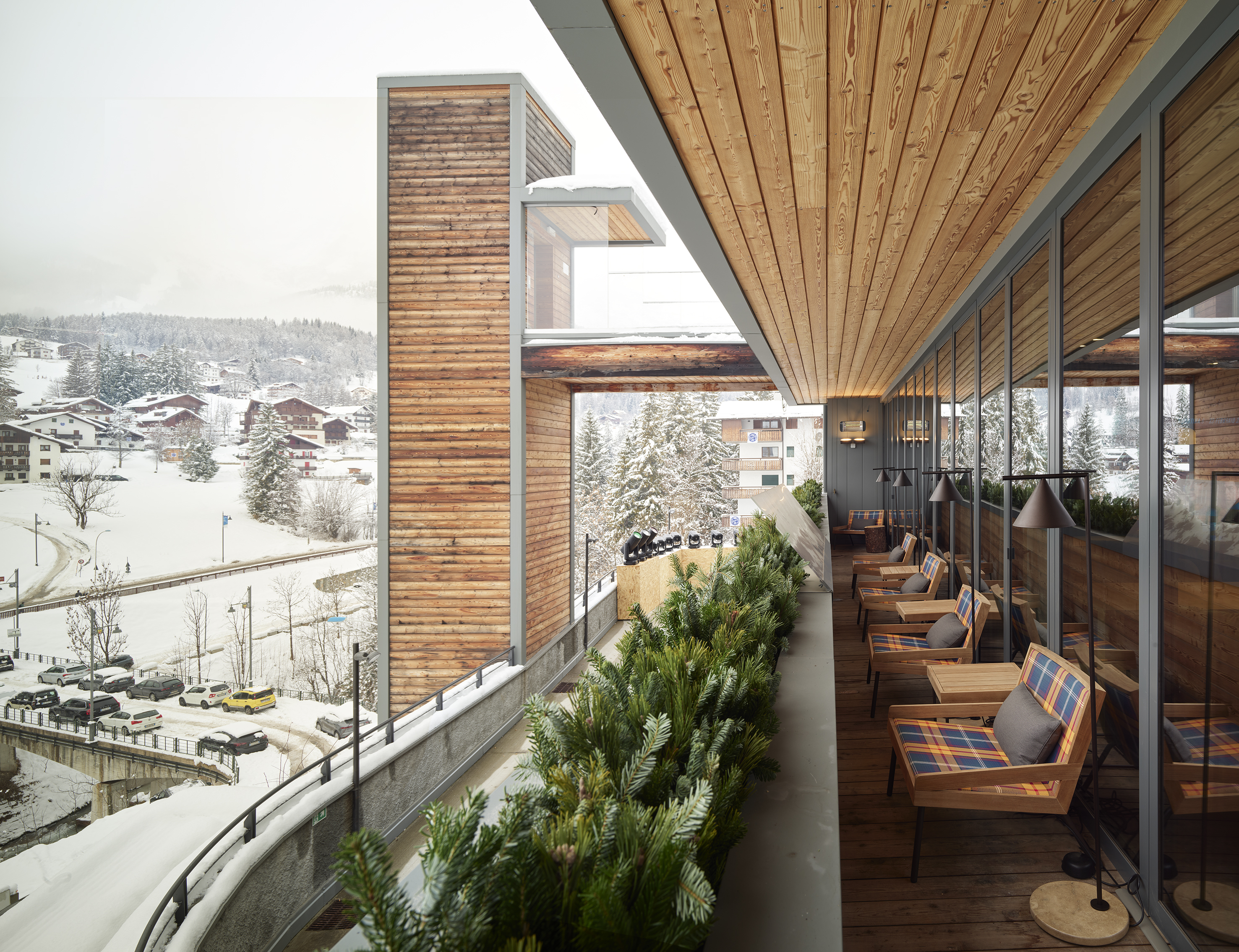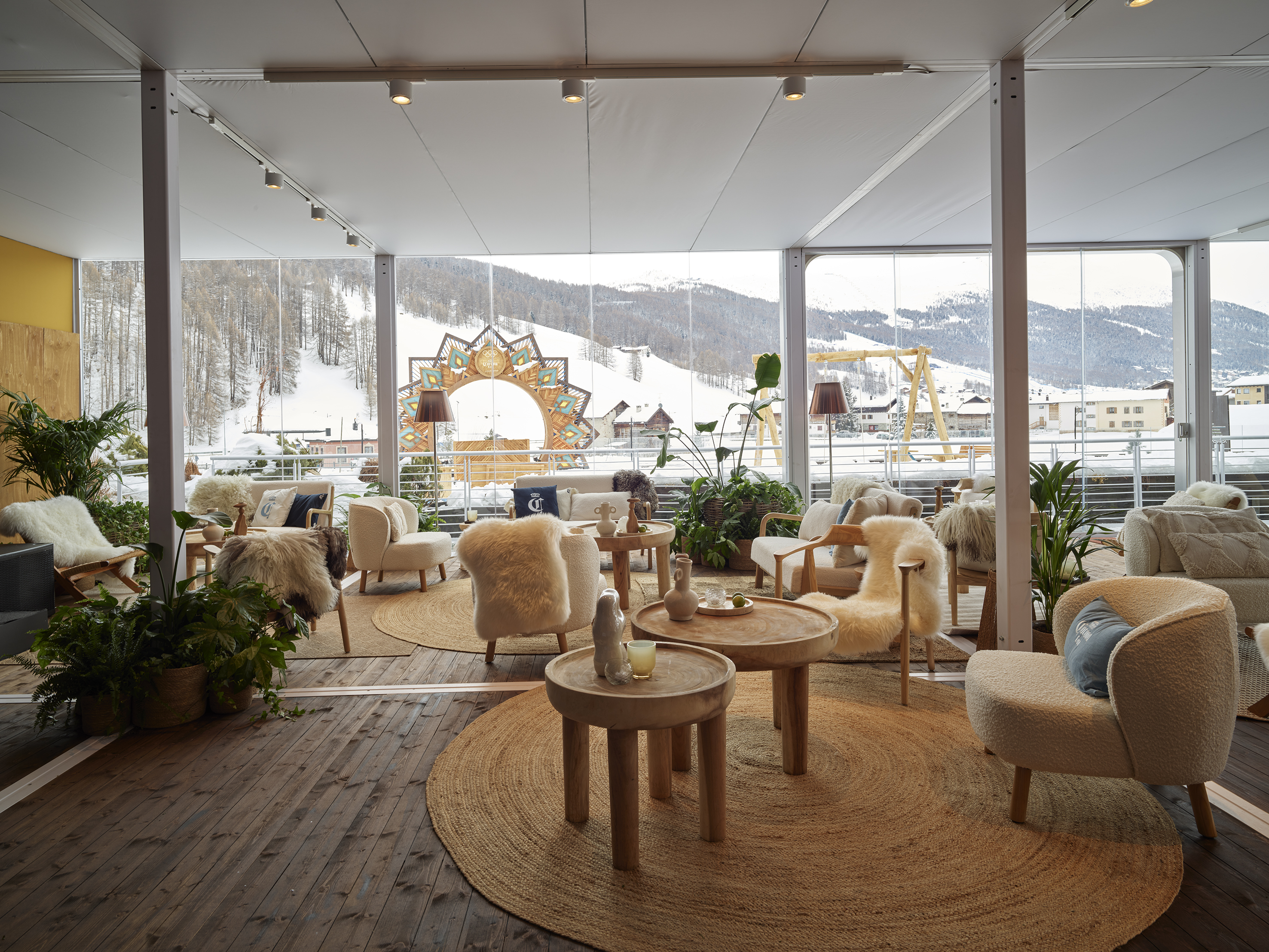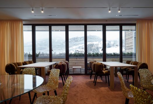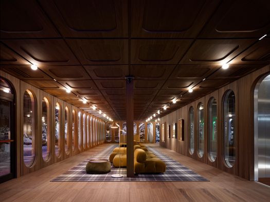 Livigno rappresenta la sede più giovane e dinamica anche dal punto di vista del design d’interni. In questo contesto l’immaginario montano viene riletto in una chiave più leggera e giocosa. Accanto ai riferimenti materici tipici dell’ambiente alpino, emerge anche un richiamo agli interni di montagna degli anni Sessanta e Settanta, periodo in cui la montagna iniziava ad affermarsi come meta di villeggiatura più accessibile e meno esclusiva. In questo senso, il progetto di design di Livigno guarda anche al design radicale di quegli anni.