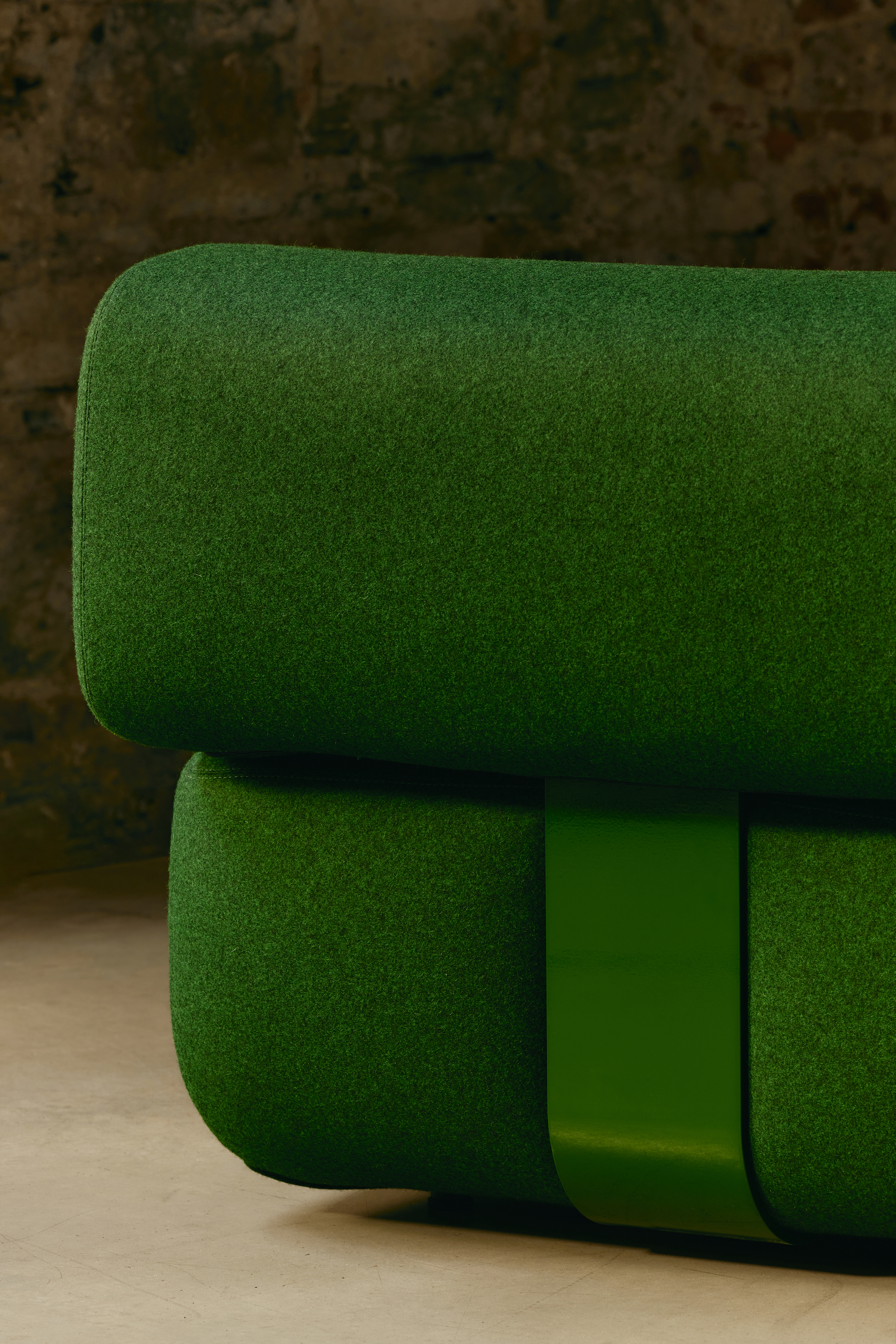 L’imbottitura, in poliuretano espanso a densità differenziata, offre un supporto ergonomico e un elevato livello di comfort, assicurando un supporto ottimale. Una fascia metallica sostiene gli schienali e avvolge i fianchi degli elementi imbottiti. Il basamento e il sistema d’aggancio della struttura in metallo sono nascosti.