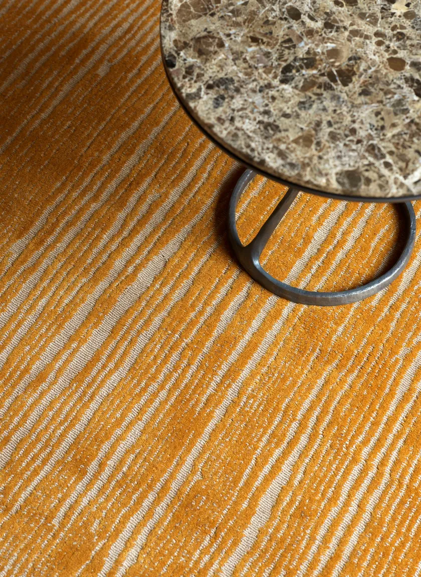Linee in rilievo irregolari creano un effetto vibrante e cangiante nel tappeto Sunset di Lelièvre. Realizzato in un mix di lana e Tencel che dà brillantezza al prodotto, il tappeto cambia riflesso a seconda dell'angolo di visione. Come le altre creazioni della collezione Rain firmata Patrick Jouin, Sunset si ispira alle gocce di vernice colante su tela che diventano qui materia solida in un gioco tra lucido e opaco.