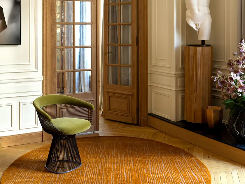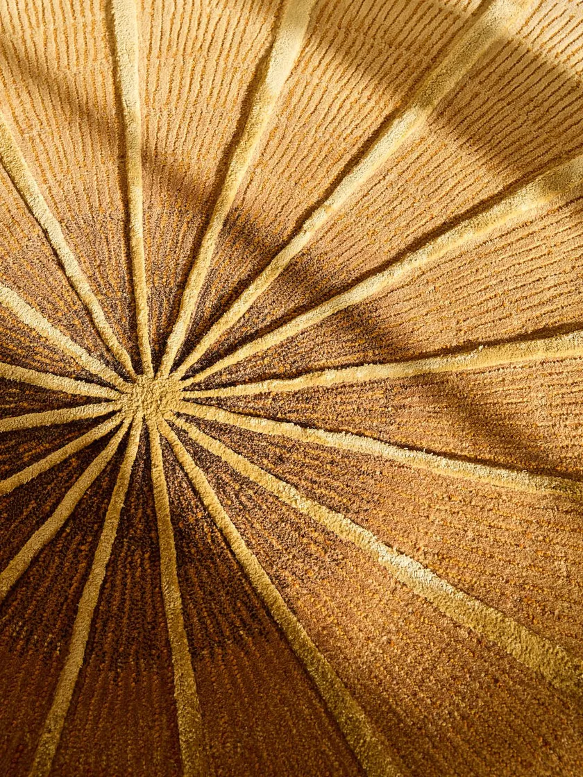 Al tempo stesso grafico e organico, il tappeto Churuatas di Serge LESAGE traduce in forma tessile una delle opere emblematiche dell'artista Claudia Lavegas ispirata alle capanne circolari indigene scoperte nel villaggio amazzonico di Mayupa.‎ Una stratificazione di gradienti e texture dai colori naturali e dorati genera un motivo circolare che riecheggia la struttura radiale delle architetture tradizionali.