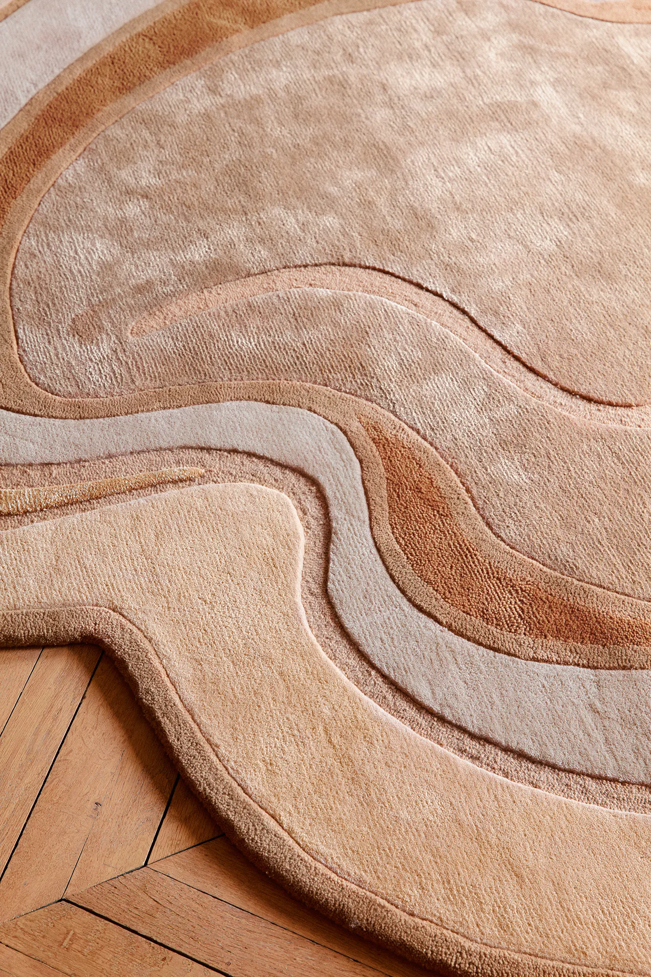 Interamente realizzato a mano, il tappeto Sahara di Toulemonde Bouchart esplora la materia in movimento.‎ In un tono su tono effetto quasi pieno, il tappeto disegnato da Anne-Sophie Pailleret gioca con lievi rilievi e sfumature di luce per riecheggiare il calore minerale e la poesia dei paesaggi desertici.‎