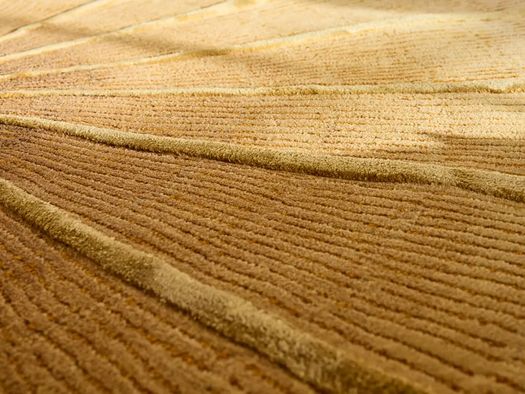 Realizzate in fibre naturali come lana e seta o filati sintetici come il poliestere, texture di differenti altezze garantiscono l'effetto tridimensionale del tappeto, dando vita a un gioco di pieni e vuoti, luci e ombre e contrasti materici.