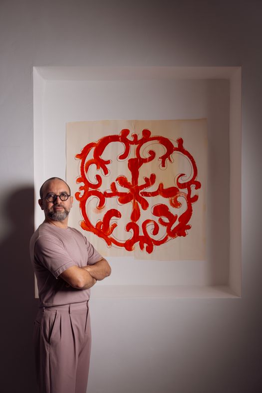 Il rosone appartiene da sempre alla pietra, alla facciata, alla luce filtrata delle cattedrali pugliesi. Paulicelli e Antonio Aricò lo spostano, portandolo dentro lo spazio abitato. Lo reinterpretano attraverso il rosso del corallo e il ritmo di un barocco organico, con sfumature ispirate al Mediterraneo del Sud Italia e della Grecia.