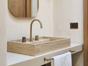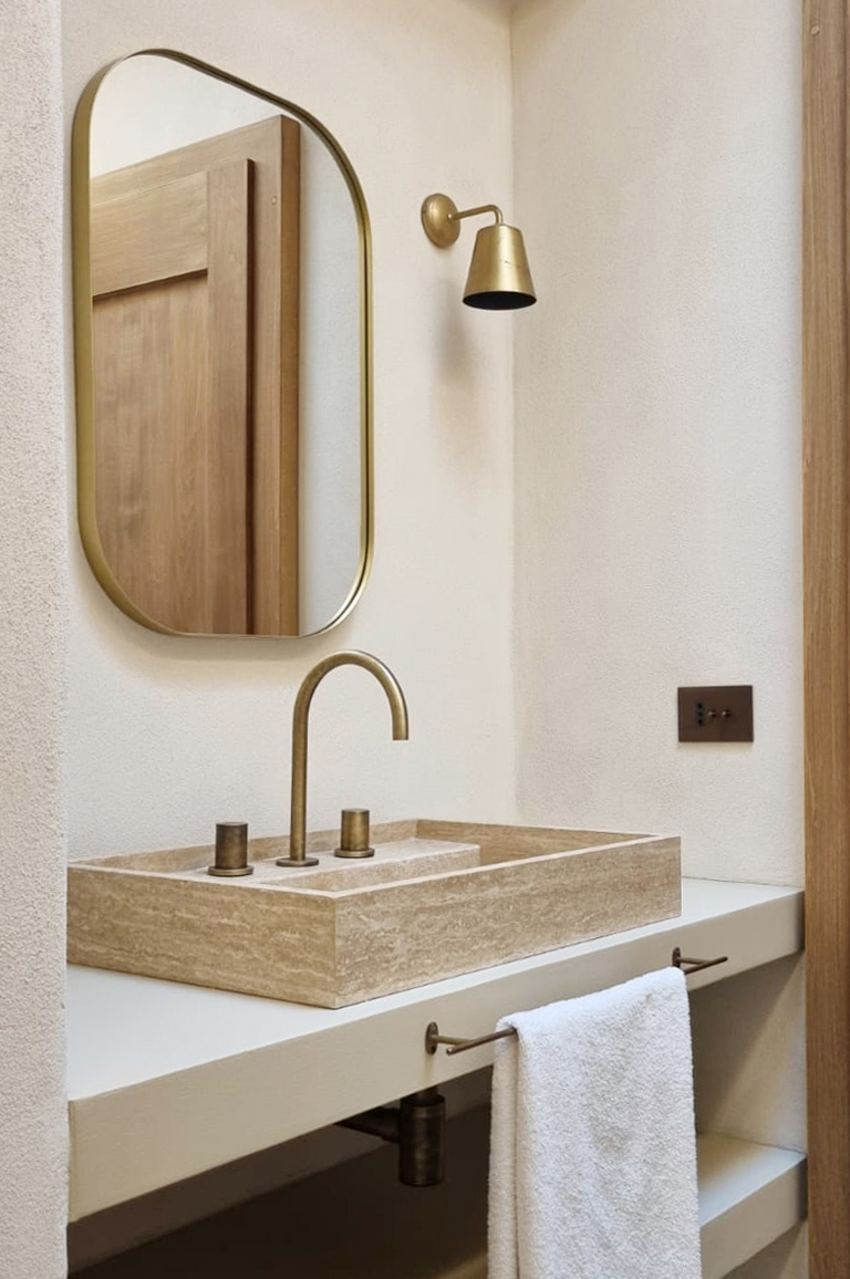 Le soluzioni Ritmonio contribuiscono a rafforzare la coerenza materica e l’atmosfera calda e accogliente di Villa Delfina. La rubinetteria Diametro35 S in finitura Brushed Dark Bronze si sposa perfettamente con la moodboard progettuale. In primis per le linee pulite e poi per le tonalità profonde, che evocano sensazioni di solidità e comfort.