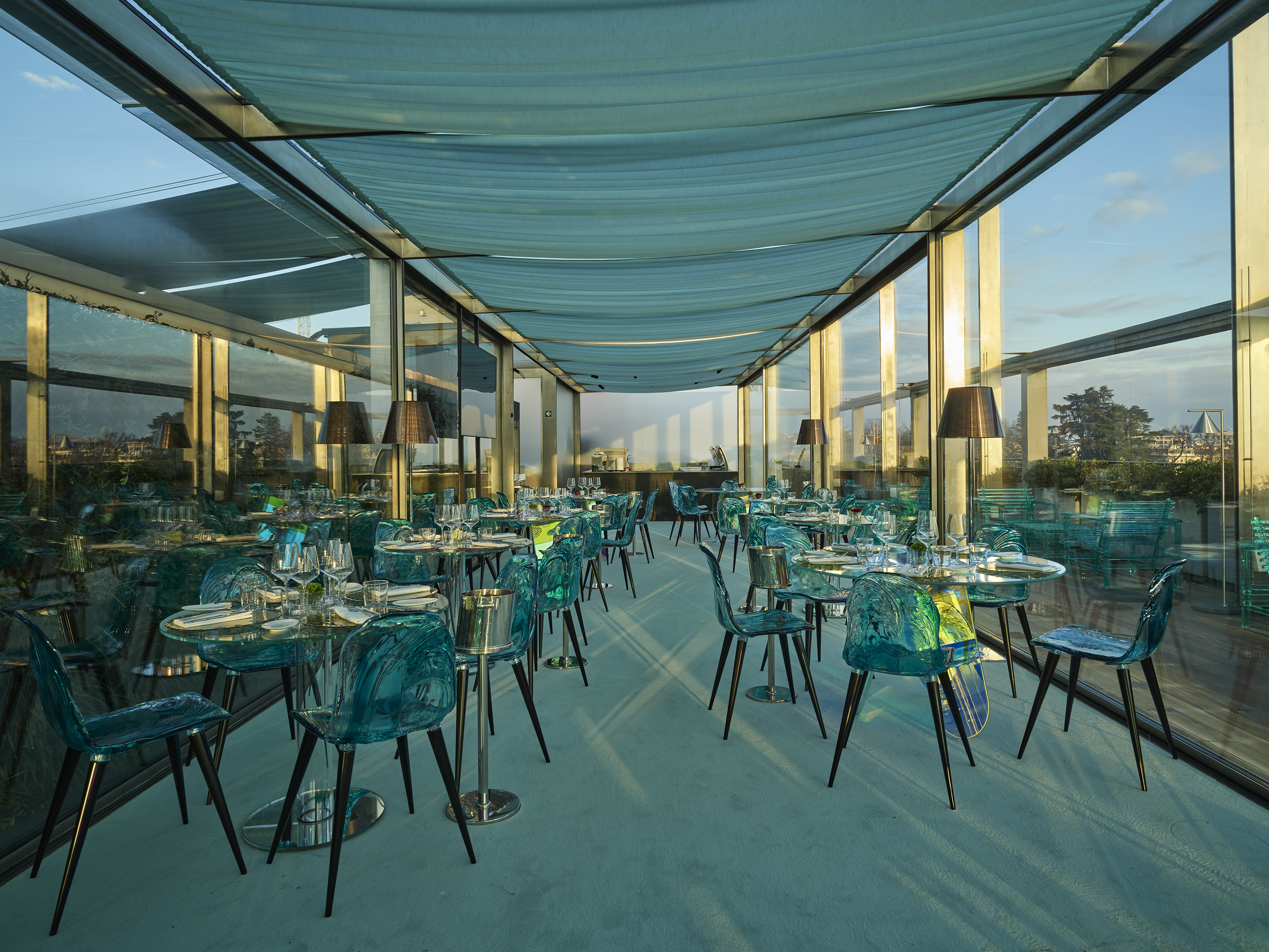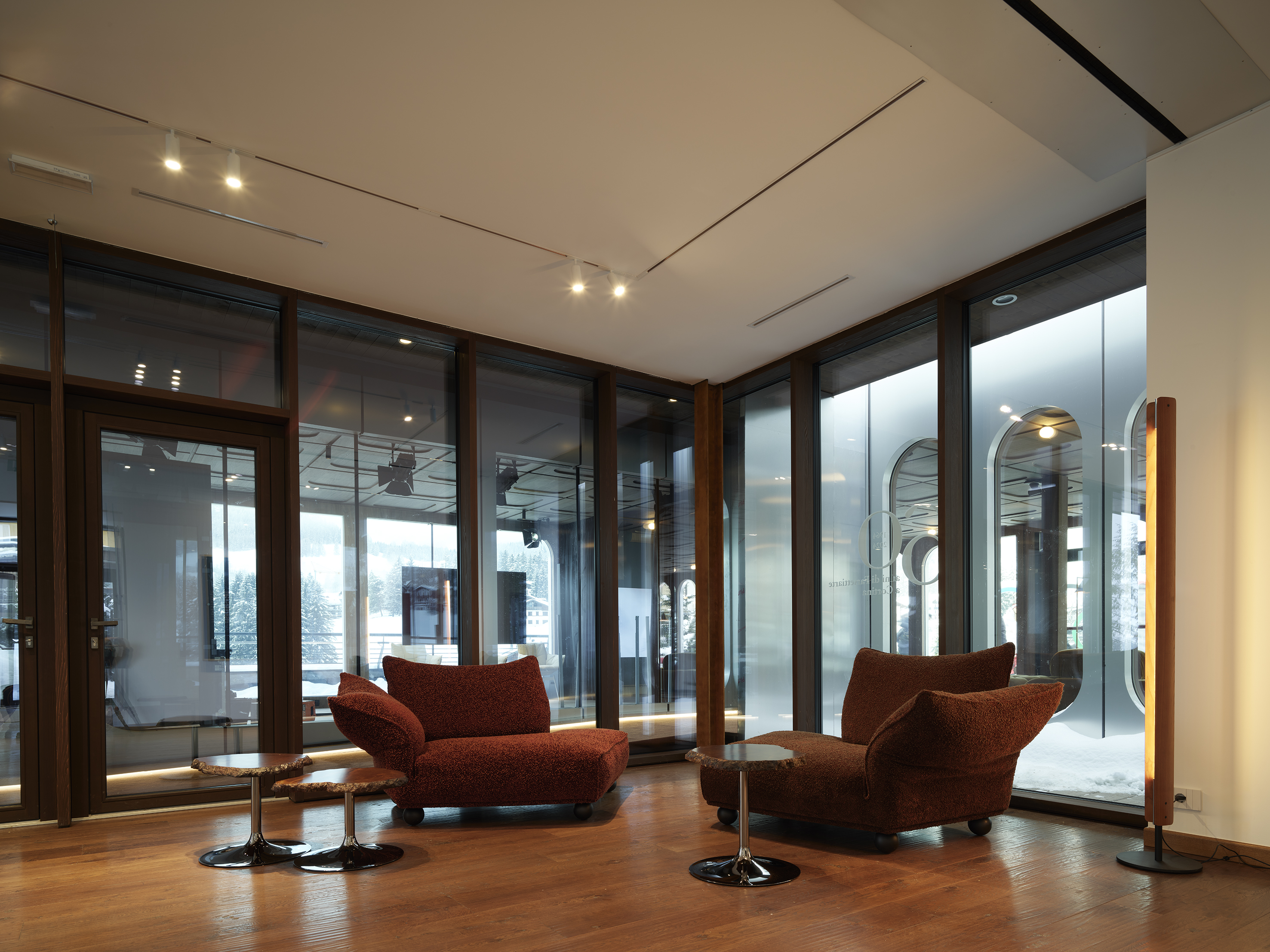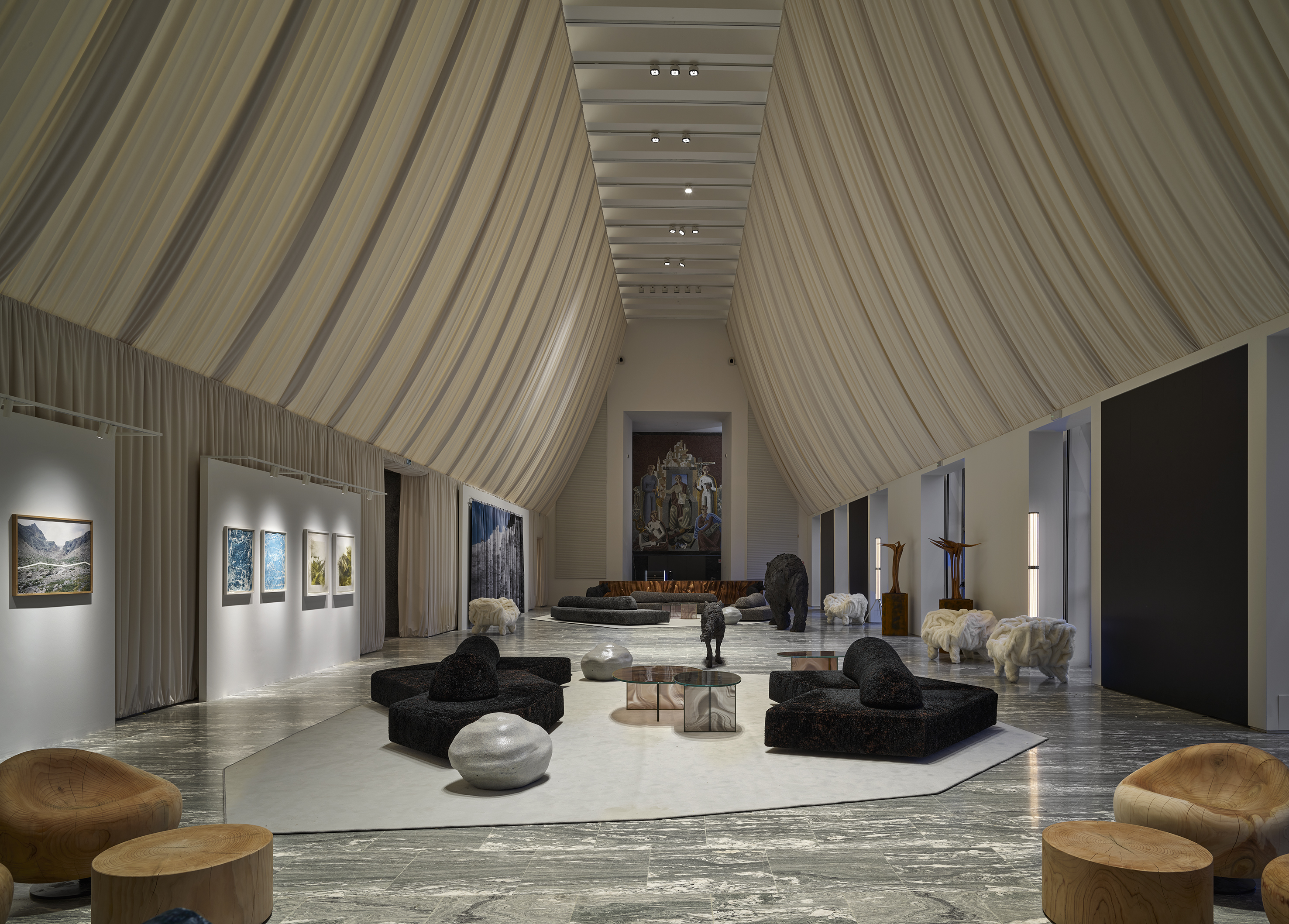 Il progetto architettonico e di interior design interpreta il tema MUSA partendo dal paesaggio e soprattutto dalla montagna quale elemento naturale e simbolico, quinta e punto di arrivo dei “Grand Tour” settecenteschi che hanno ispirato generazioni di viaggiatori ma anche teatro naturale e ragion d’essere stessa degli sport invernali. L’allestimento recupera l’estetica e le atmosfere della natura e della dimensione tecnica e sportiva della montagna, altresì guidata da un forte spirito di condivisione, che si esprime per architetture, infrastrutture e materiali leggeri e resistenti, espressivi di un’occupazione temporanea, emozionale e rispettosa dei luoghi più straordinari ed impervi che i paesaggi montani ci offrono.