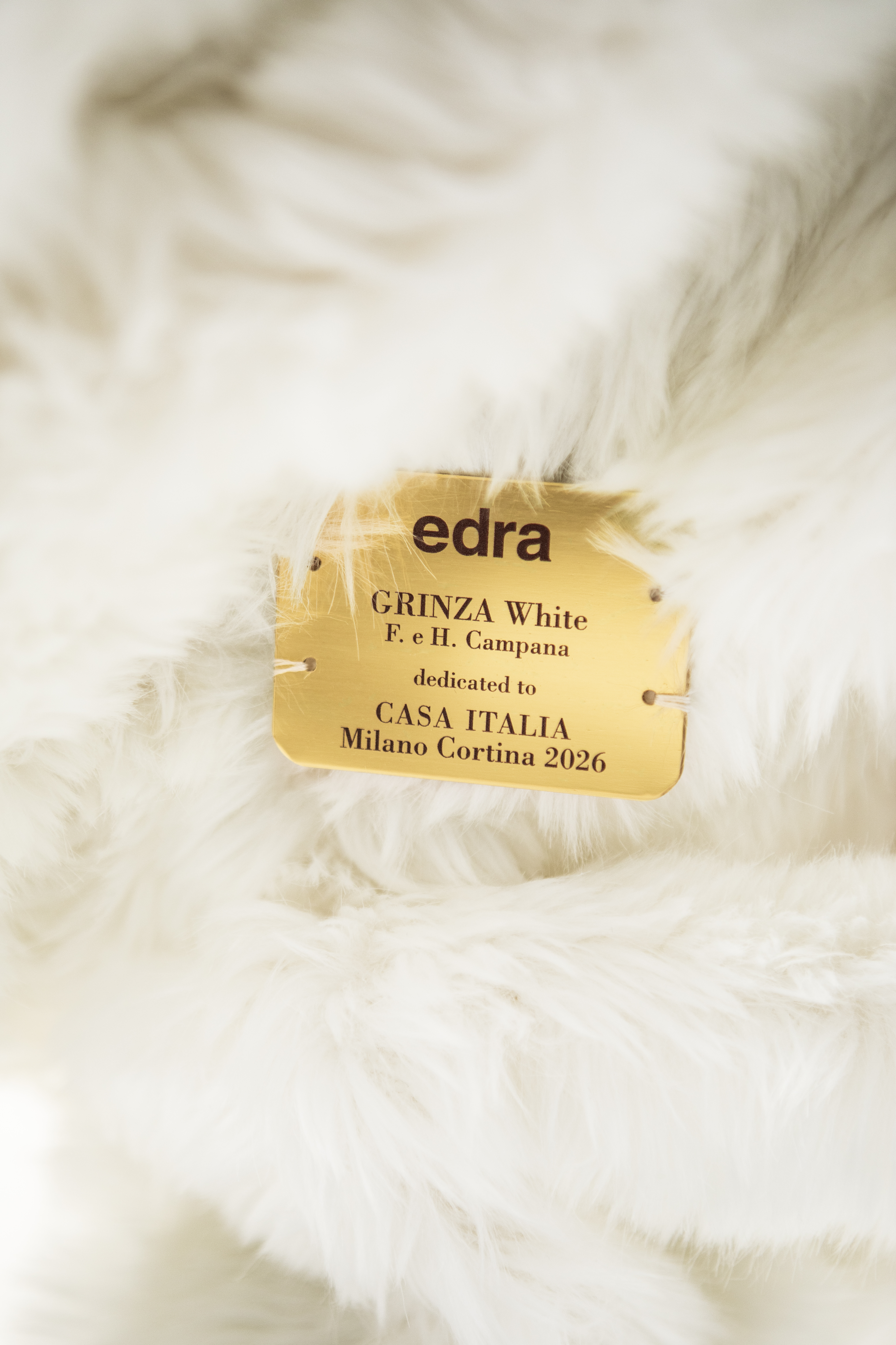 Ai progetti d'interior si affianca una special edition della poltrona Grinza dei Fratelli Campana: nell'inedita versione White, la seduta è rivestita in eco-pelliccia bianca, morbida e soffice come la neve.