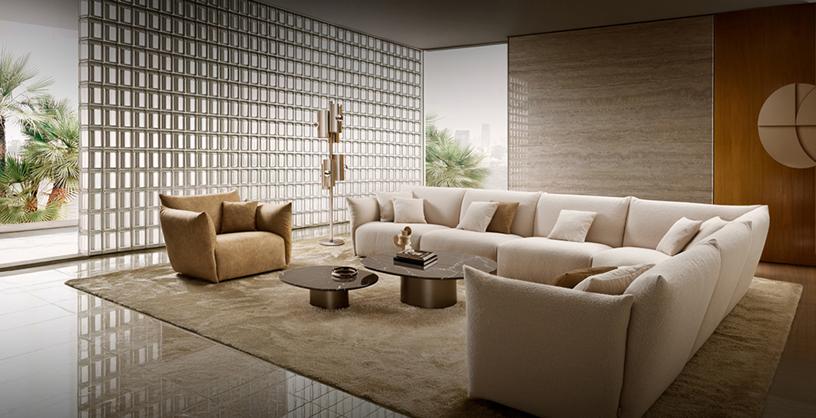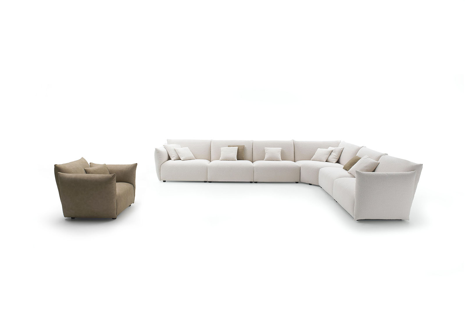 Lo schienale riprende il disegno dei braccioli e avvolge e sostiene la seduta: con grande flessibilità compositiva, Siesta si adatta a ogni esigenza abitativa, dalle configurazioni più intime di poltrone e divani lineari, alle composizioni più ampie e conviviali.