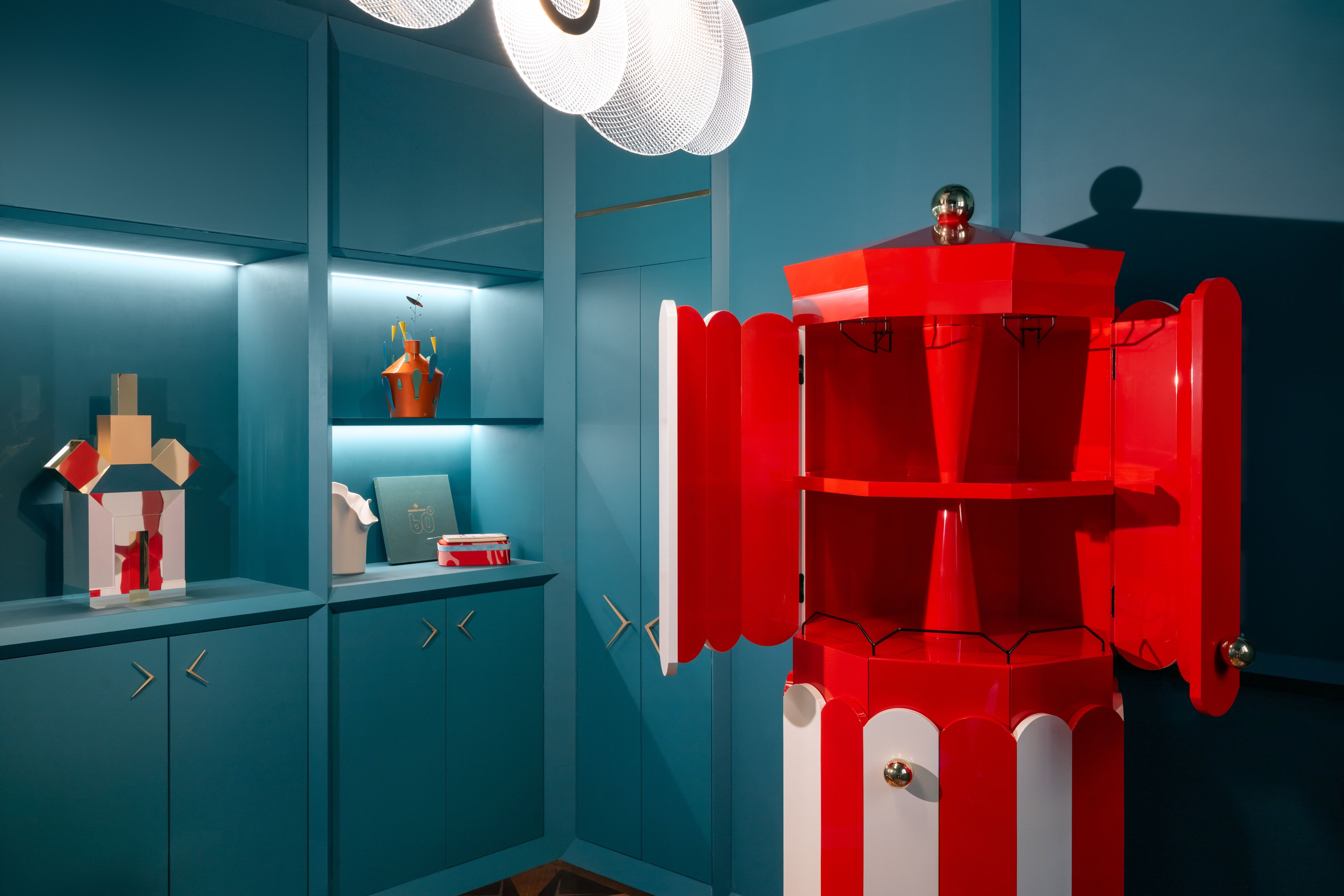 Partendo dal recupero di scocche in alluminio provenienti dal settore automotive, il brand Altreforme realizza arredi su misura e in serie caratterizzati da uno stile eclettico e audace. Tra le novità spicca il mobile bar Pollock, progettato da Francesca Aletti. Ispirato alla giostra del Carosello e ai tendoni del circo, Pollock evoca un immaginario giocoso e scenografico, celebrando la convivialità e il piacere della condivisione. Al suo interno integra ripiani, portabicchieri e una cantinetta per i vini, coniugando estetica e funzionalità.