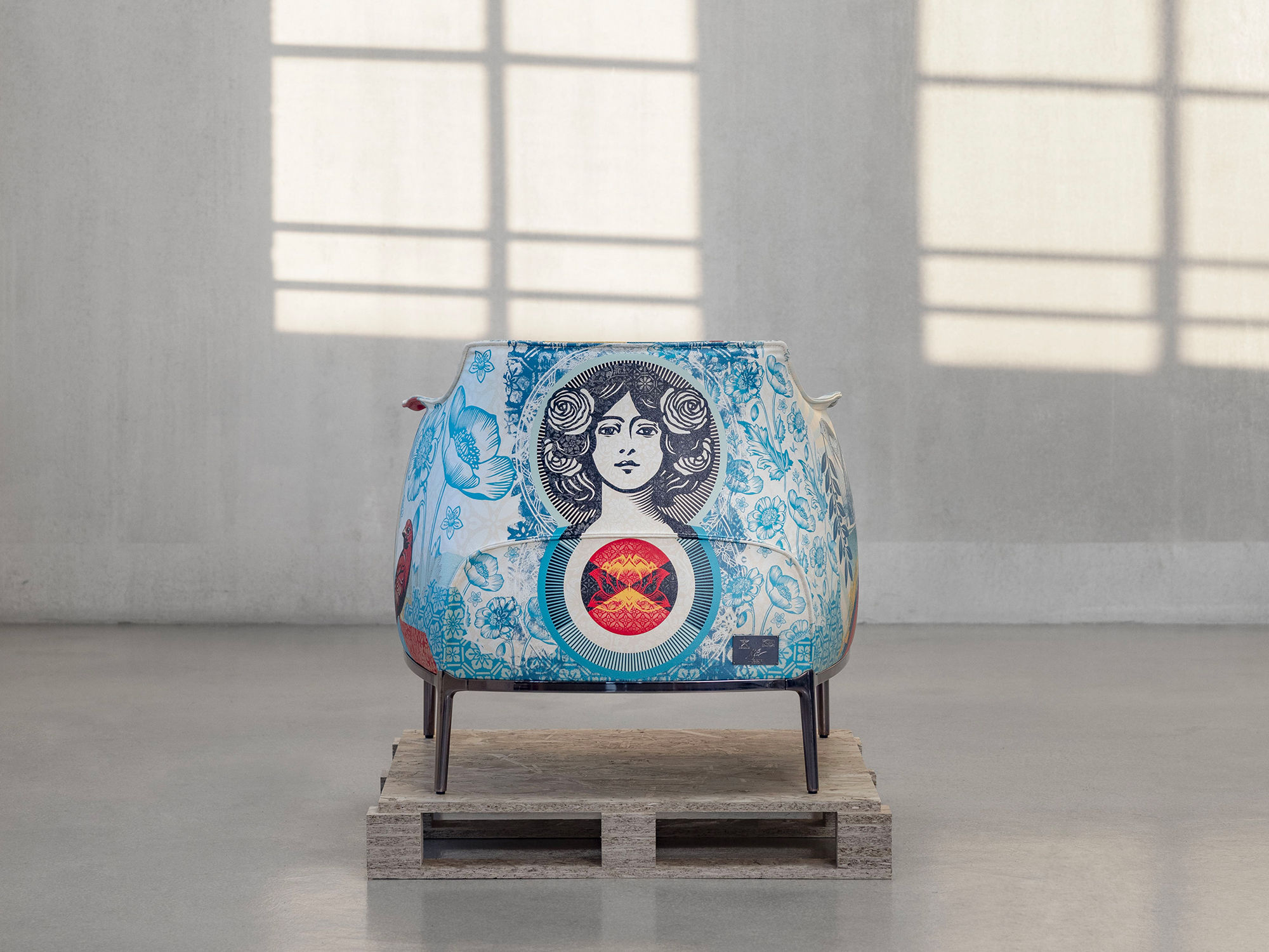 La street art di Shepard Fairey sulla pelle Poltrona Frau