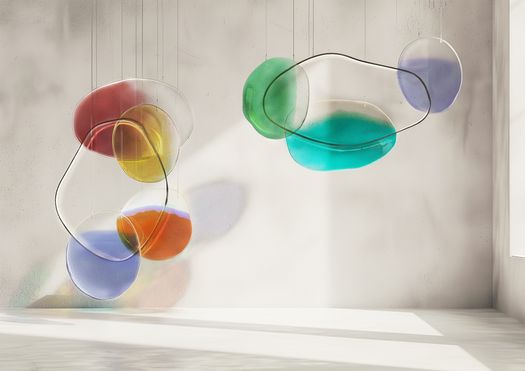 Nelle nuove lampade Crisalide, invece, è il colore stesso che si fa materia, diventando il mezzo attraverso cui si esprime. Le lastre di vetro trattate con una tecnica di fusione, appaiono leggere, fluttuanti, eteree ma se osservate da vicino rivelano la loro densità e matericità. Un tratto di luce, quasi un gesto libero, attraversa queste sensazioni di colore: non si limita a illuminare, ma racconta un processo, una trasformazione continua, una materia che appare ancora viva.