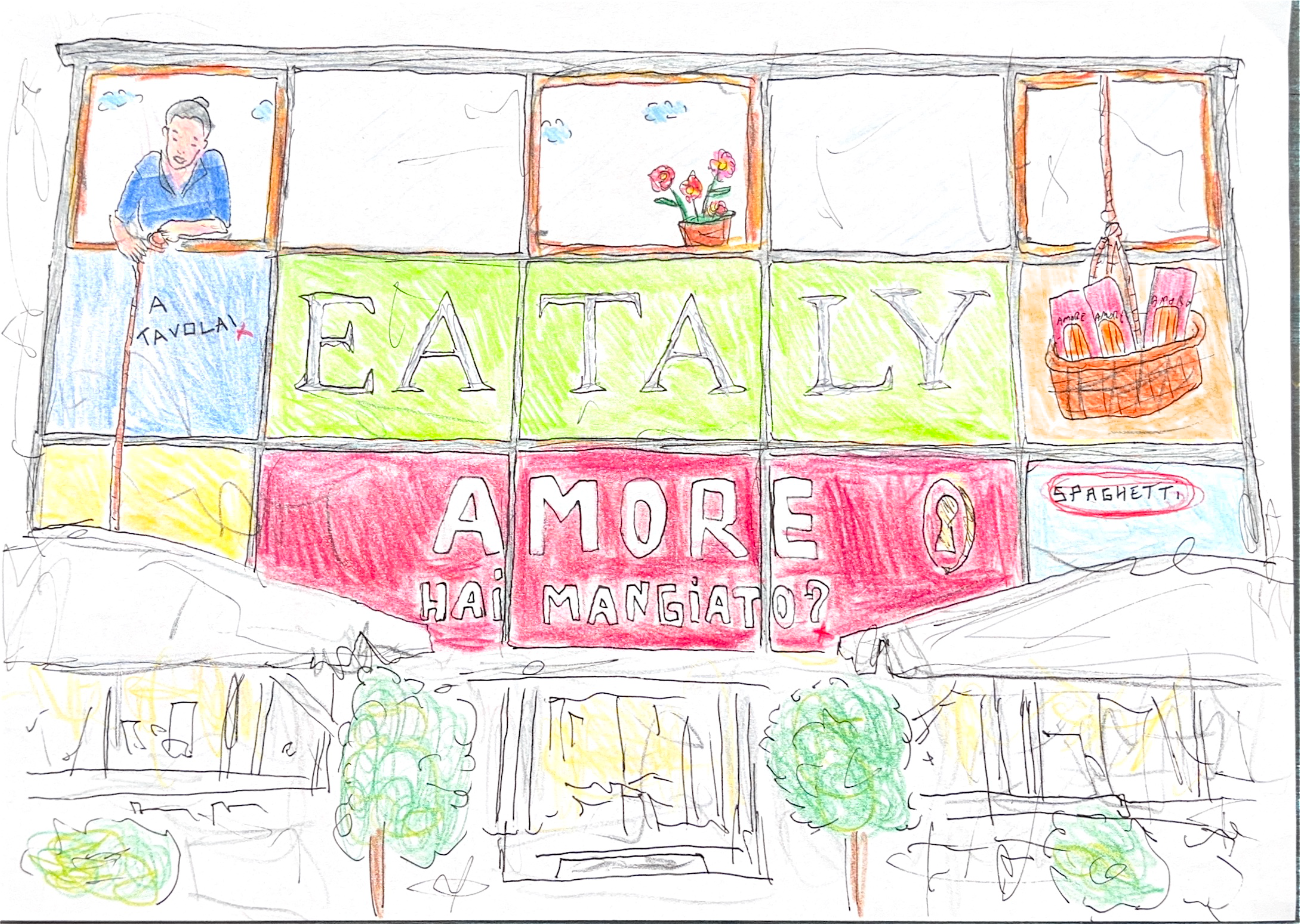 Amore, hai mangiato?” è la domanda semplice e universale che dà origine al nuovo progetto artistico di Giotto Calendoli realizzato insieme a Eataly Milano Smeraldo. Non un’opera “ospitata”, ma un percorso costruito a quattro mani: Eataly offre la sua materia prima - il cibo, la cultura gastronomica, le storie che abitano le nostre tavole - e Giotto la trasforma in una casa di ricordi, tradizioni e gesti condivisi.
