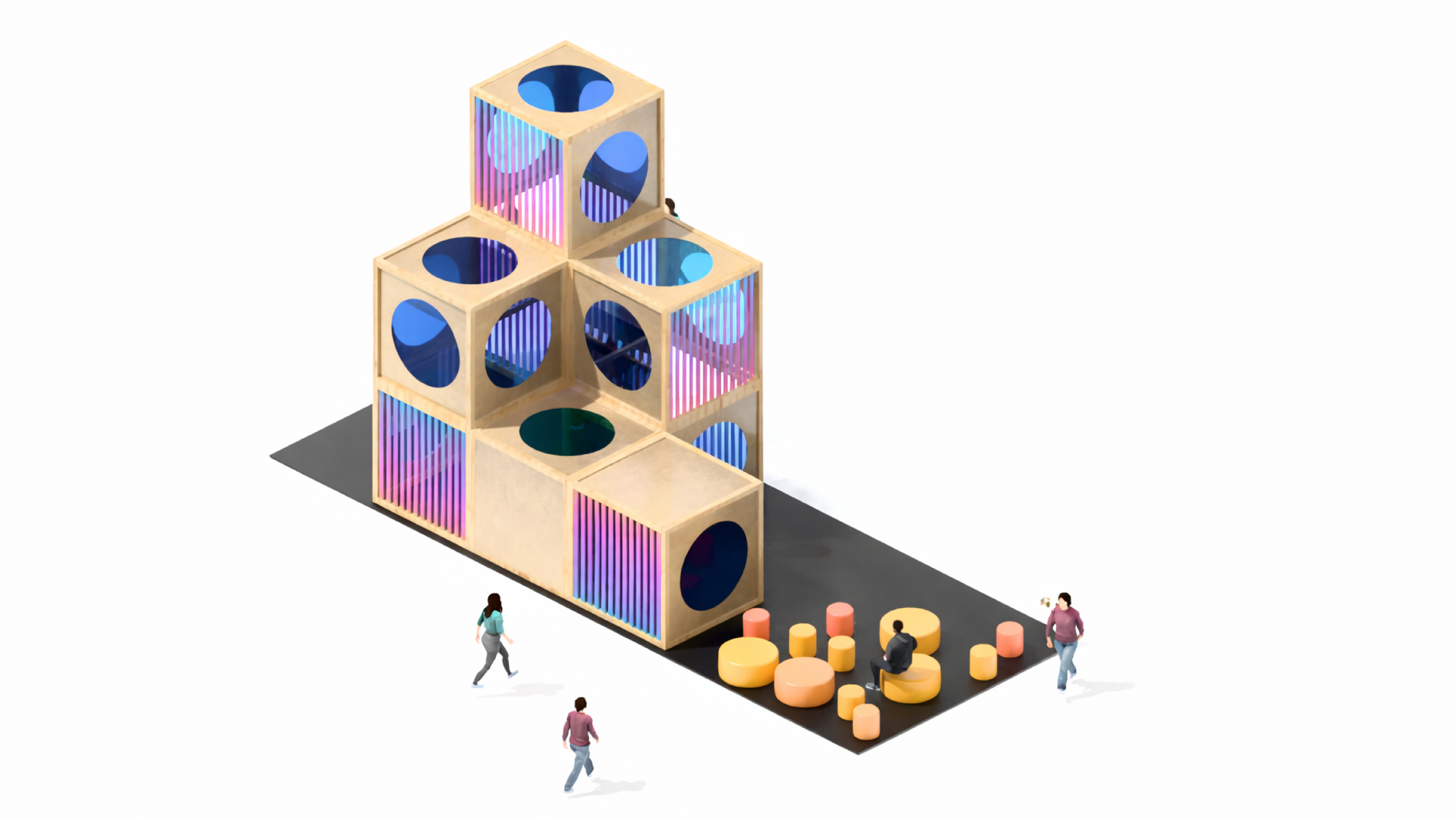 Accanto a questa installazione si sviluppa Kaleido, progettata da MAD Architects (Ma Yansong e Andrea D’Antrassi) per Canva, un ambiente immersivo di luce e colore in cui l’intelligenza artificiale diventa uno strumento creativo capace di generare nuove connessioni tra idee, immagini e progettazione.