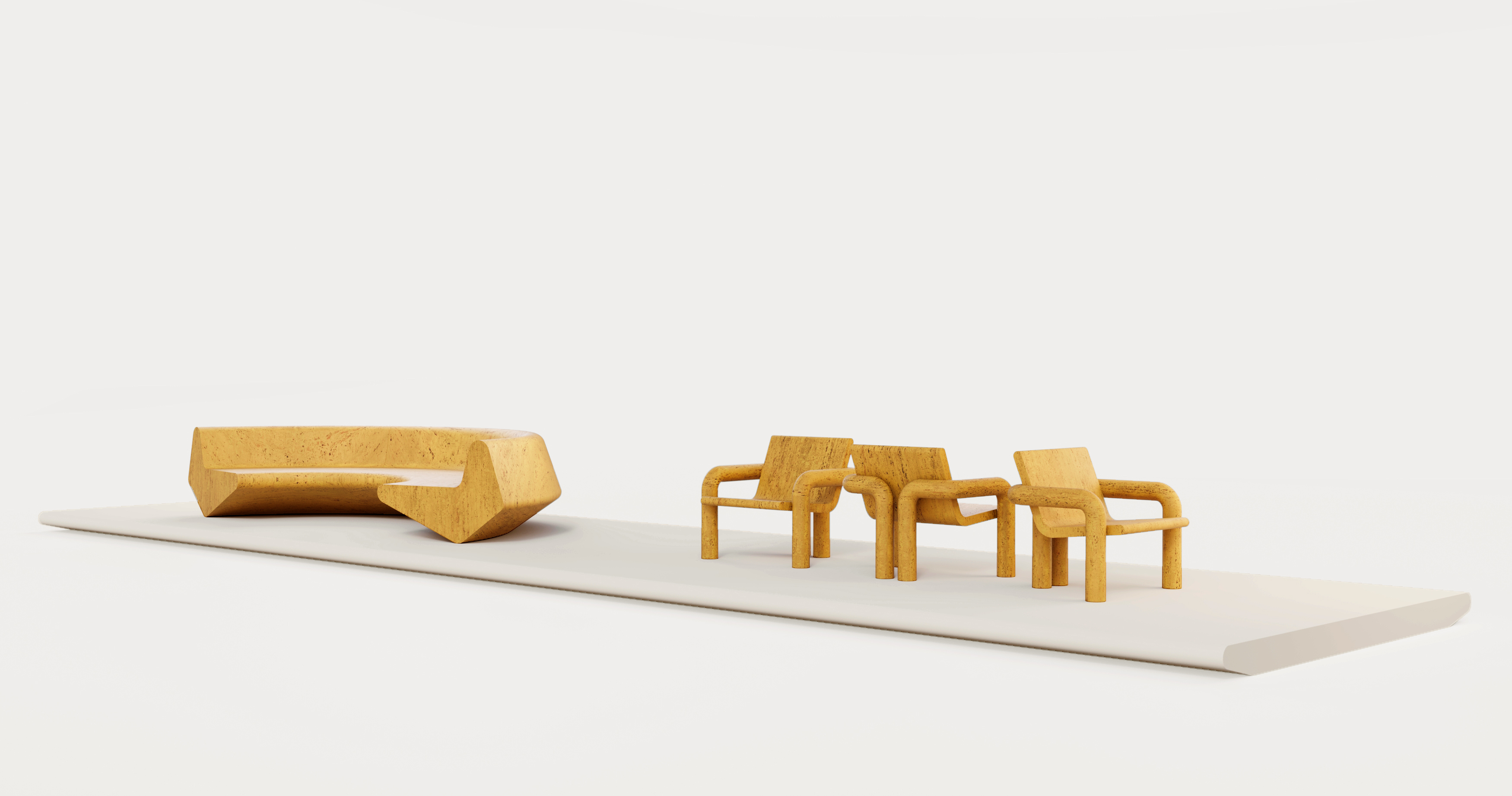 Infine, nelle Outdoor lounge la materia diventa spazio di relazione. Tra questi interventi si distinguono TIBUR / CONTINUUM dello Studio Paolo Ferrari per AATC and Co, realizzato in travertino giallo italiano, e Corals – Origin of Matter, curato da Natascia Finocchiaro Maurino per Cristallina Design con Cristallina e Graniti Maurino, che riflette sulla memoria geologica del marmo trasformando forme naturali in elementi architettonici monumentali.