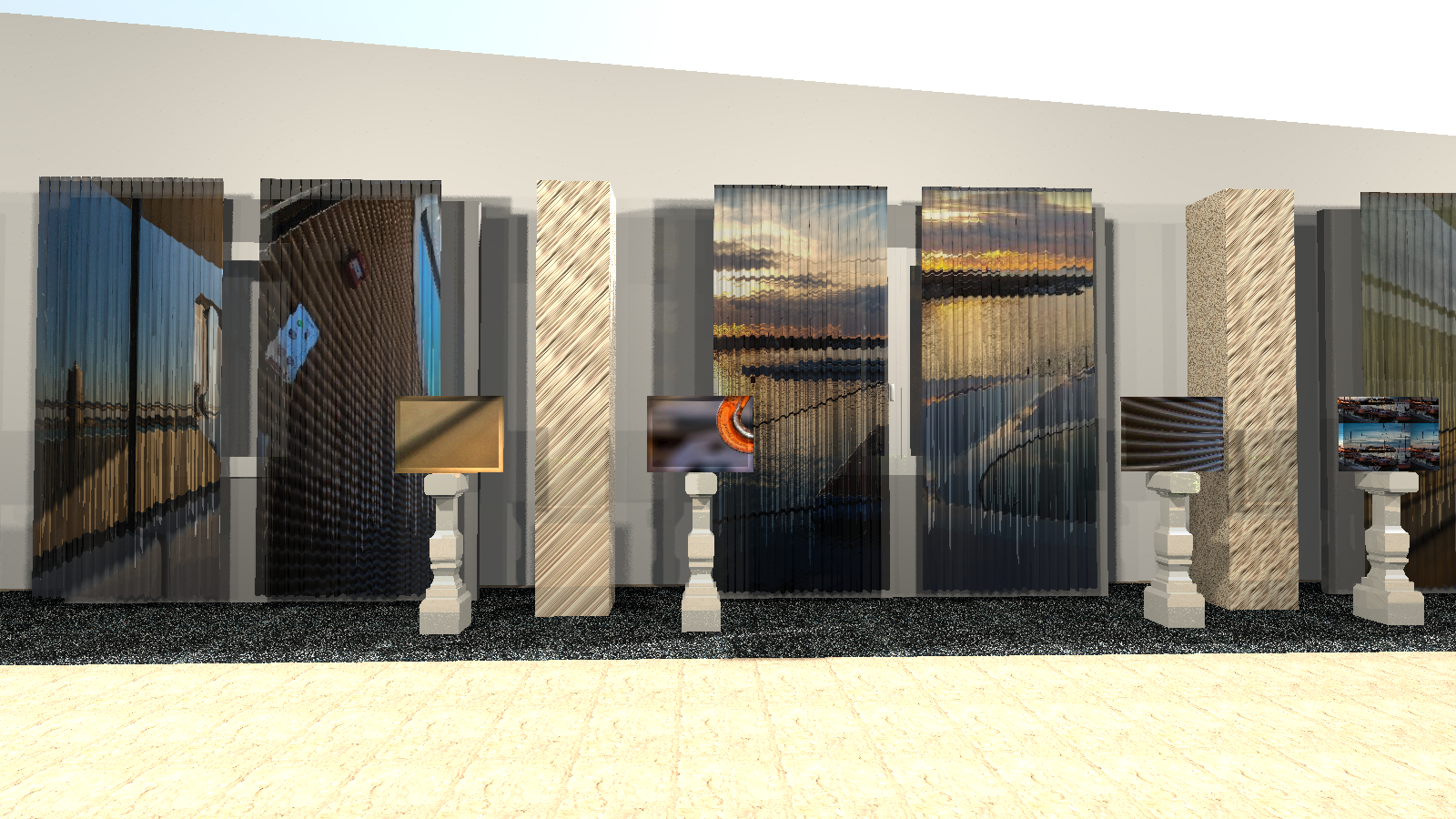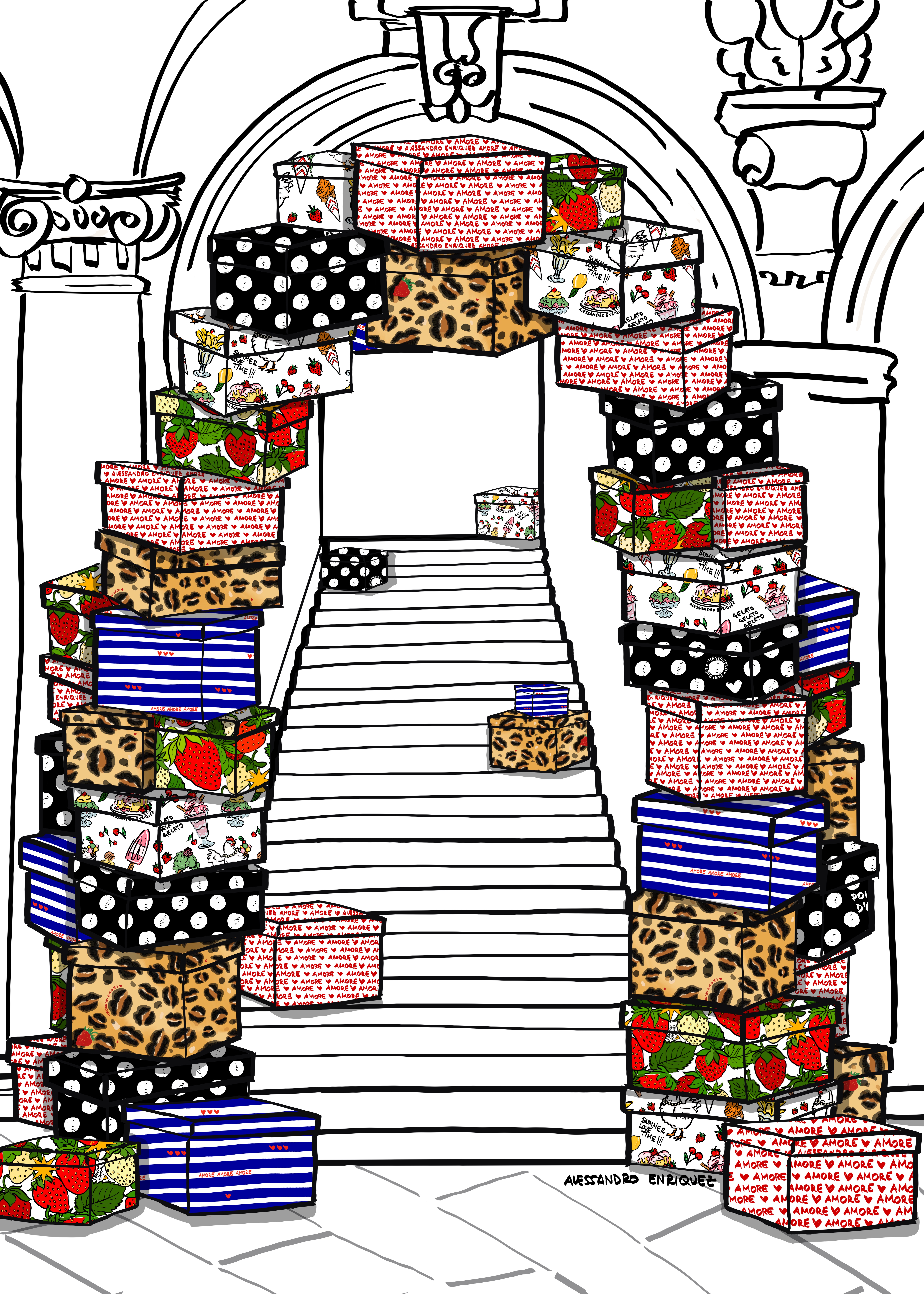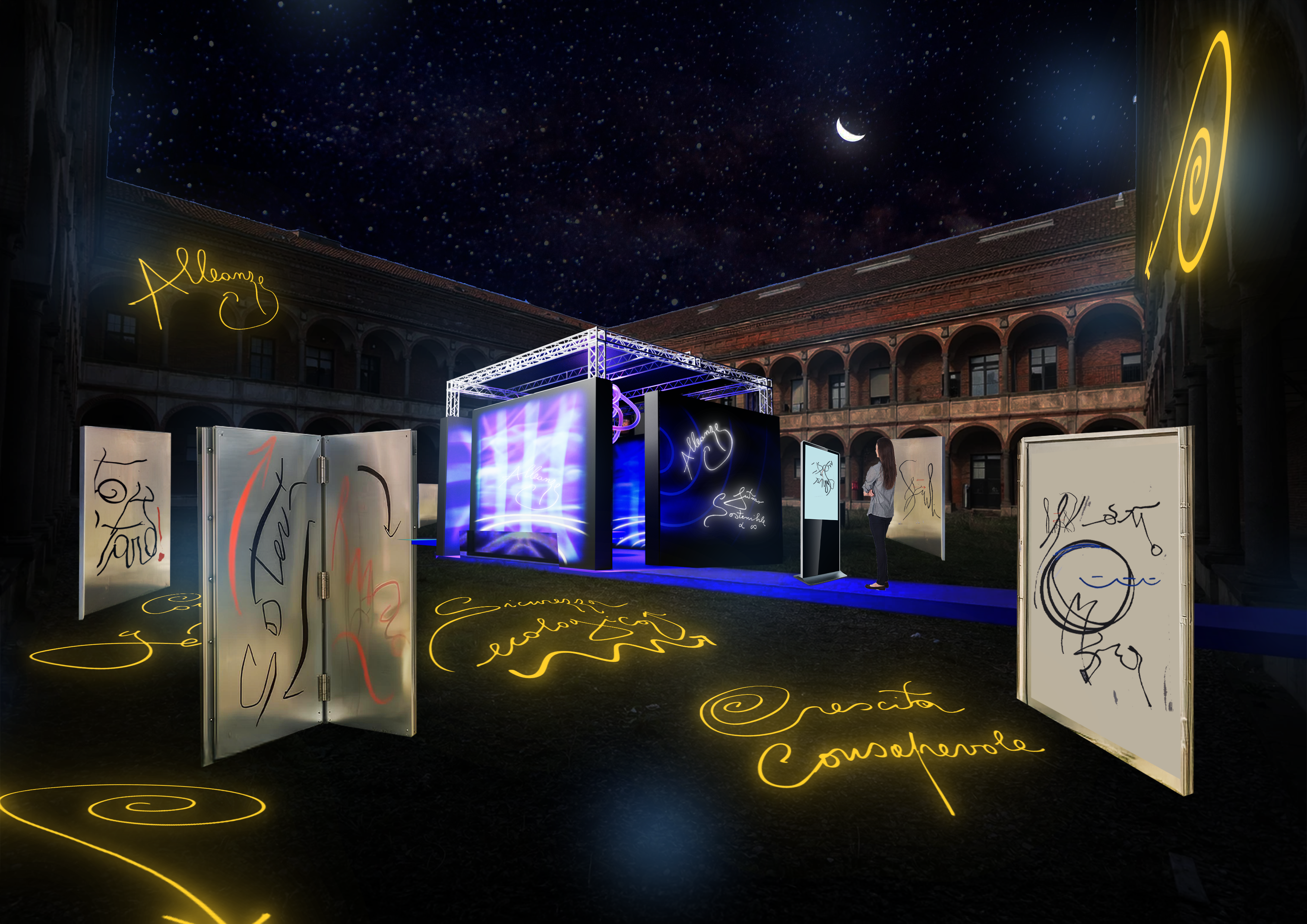 Arrivando alla scalinata monumentale, il Portale accoglie Sorpresa di Alessandro Enriquez con Kartos e infine, nella Sala Stampa, Dainelli Studio per Status Contract firma Materia in due atti.