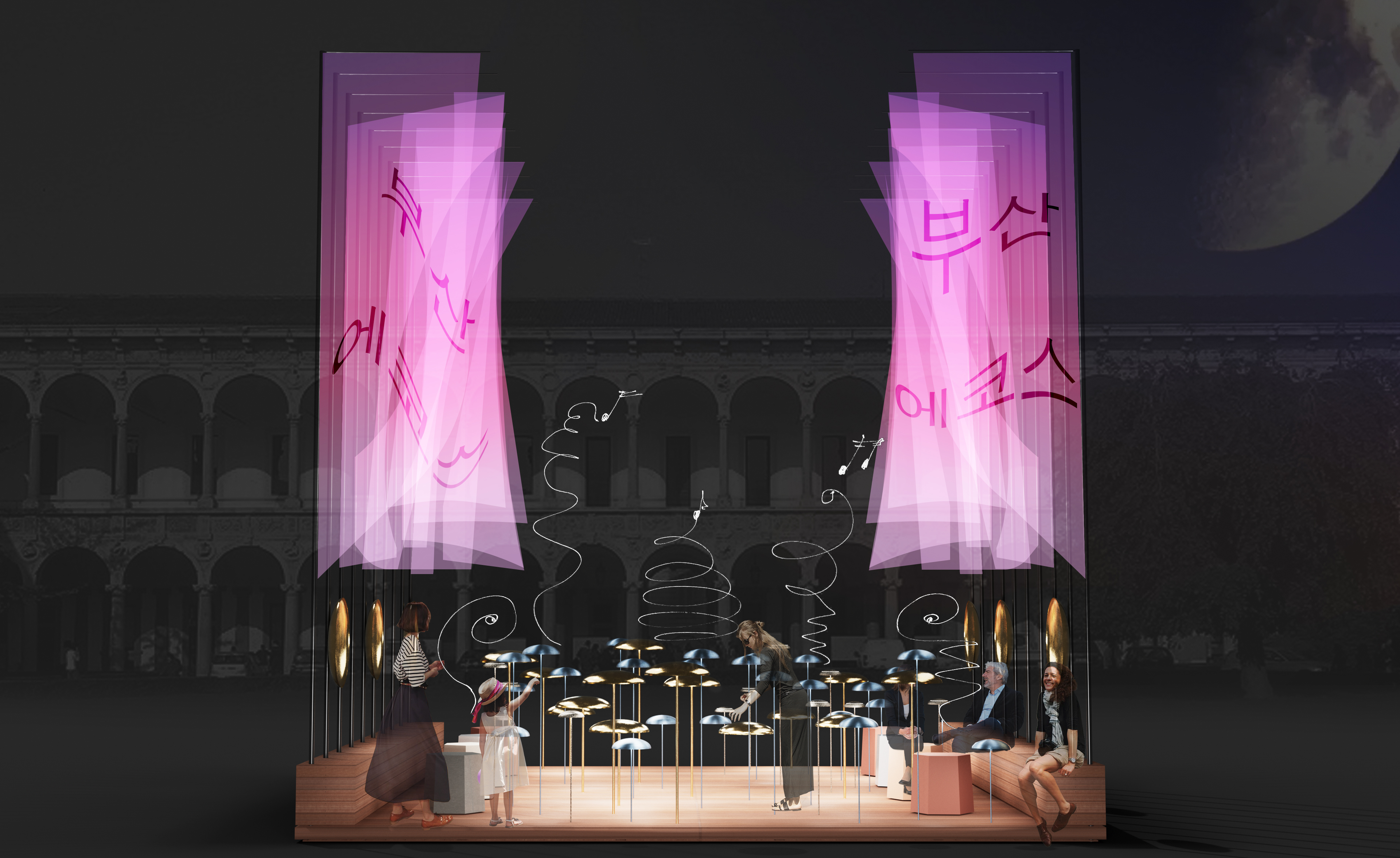 Il dialogo tra tecnologia e materia continua con Ceramics Forged in Light progettata da Snøhetta per VitrA, dedicata al riciclo della ceramica, e con Busan Echoes di Migliore+Servetto per la City of Busan, installazione sonora e luminosa che celebra l’identità culturale della città coreana.