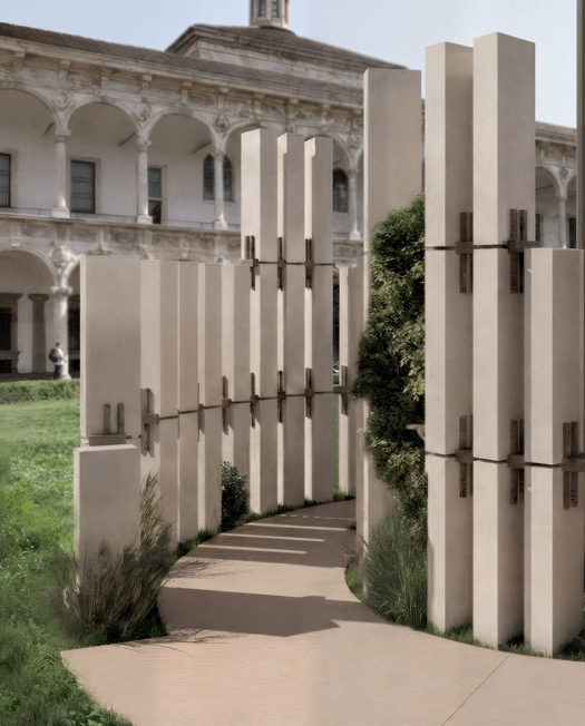 Nel cuore verde della città, l’Orto Botanico di Brera diventa un luogo di ascolto e contemplazione, dove la materia si manifesta come ciclo vitale, crescita e trasformazione. Le opere dialogano con la natura esistente, intrecciando progetto e paesaggio in un equilibrio delicato tra intervento umano e processi naturali.