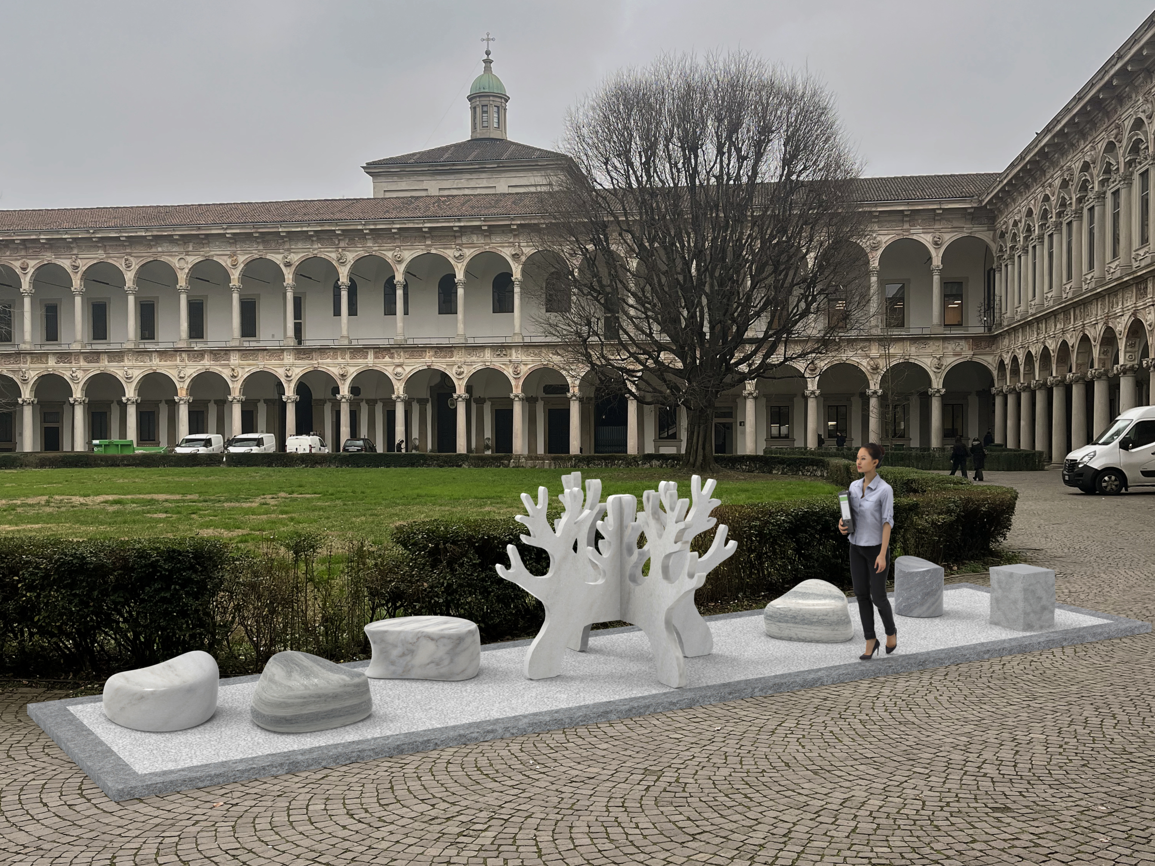 La sede storica dell’Università degli Studi di Milano rappresenta il cuore della mostra-evento. Cortili, portici e loggiati del complesso rinascimentale si trasformano in un grande laboratorio di sperimentazione progettuale, dove la materia si manifesta attraverso luce, architettura, tecnologia, gesto artistico e ricerca industriale.
