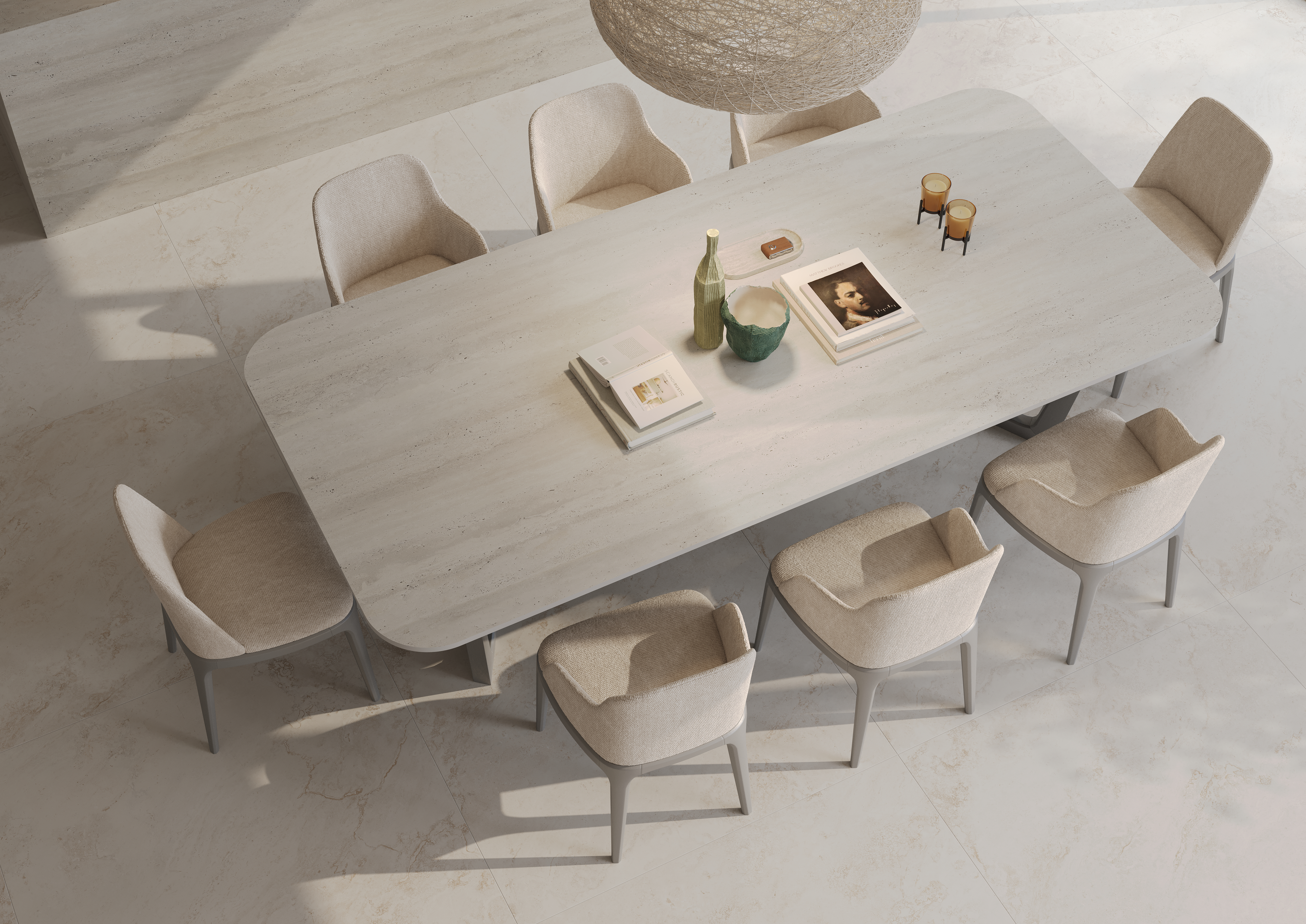 La linea Travertine rende omaggio a uno dei materiali più iconici della tradizione costruttiva italiana. Disponibile nelle varianti Crosscut e Veincut (Osso) e in quattro colorazioni, rilegge il marmo travertino con una sensibilità contemporanea.