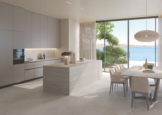 Le superfici in gres porcellanato RAK Ceramics in grande formato consentono una continuità materica ideali per isole cucina, piani lavabo, piani di lavoro e superfici orizzontali. I nuovi formati in grès porcellanato diventano uno strumento progettuale per lavorazioni su misura, integrazione con lavelli e lavabi e piani cottura, offrendo un’estetica pulita e alte performance tecniche. La varietà di spessori disponibili da 6 a 20 mm consente di rispondere con precisione a ogni esigenza progettuale.