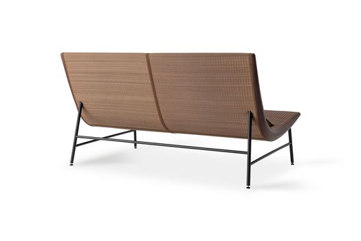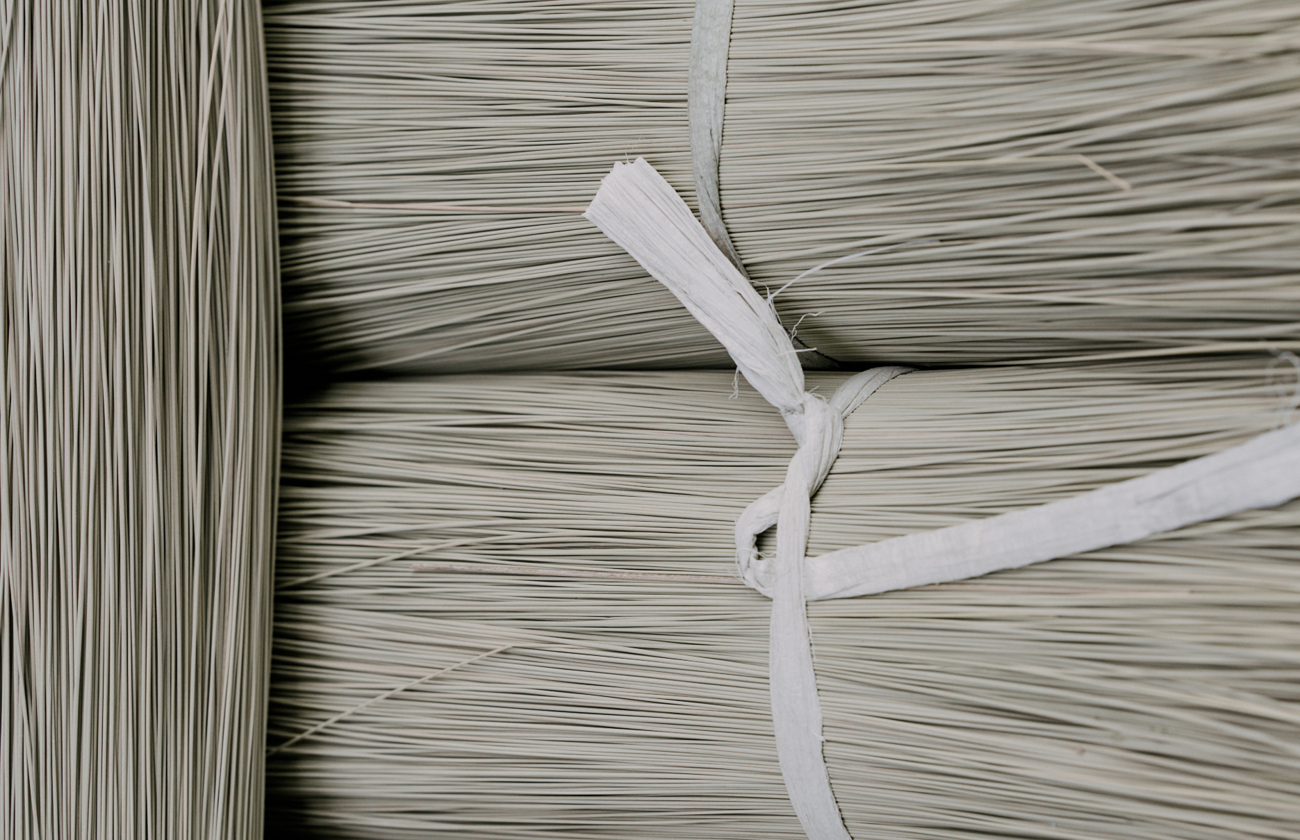 Materiale identitario del brand giapponese, il giunco tradizionalmente usato nel tatami si colora di sfumature profonde che amplificano l'effetto materico dell'intreccio