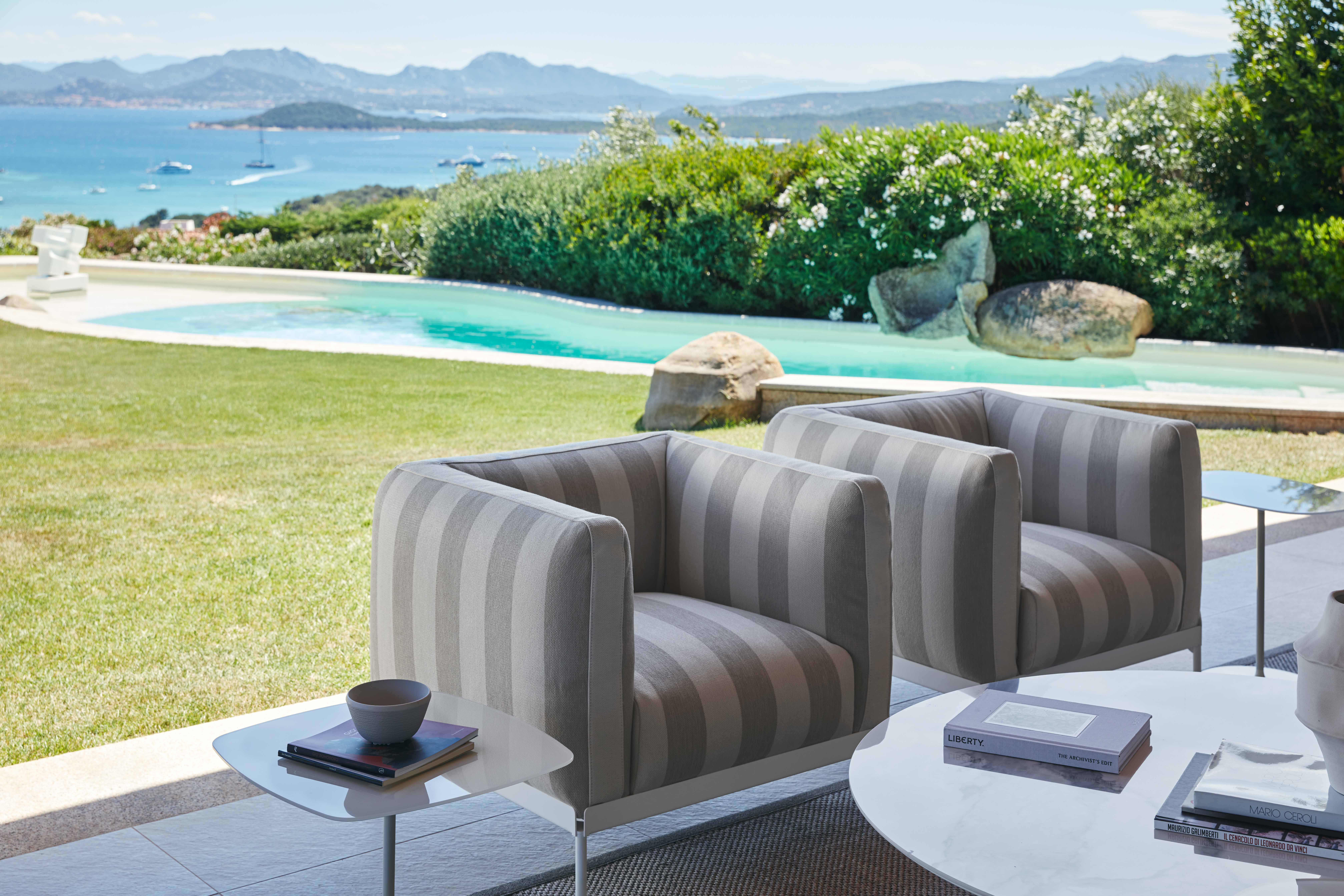 Accanto ai tradizionali rivestimenti, ASIA è oggi proposta in una versione in pelle ecologica, ottenuta attraverso un processo di concia green sostenibile e circolare. La collezione si è ampliata ulteriormente con una nuova variante outdoor: tessuti waterproof e una struttura in acciaio verniciato bianco permettono ad ASIA di abitare anche gli spazi esterni, portando comfort e stile all’aria aperta.