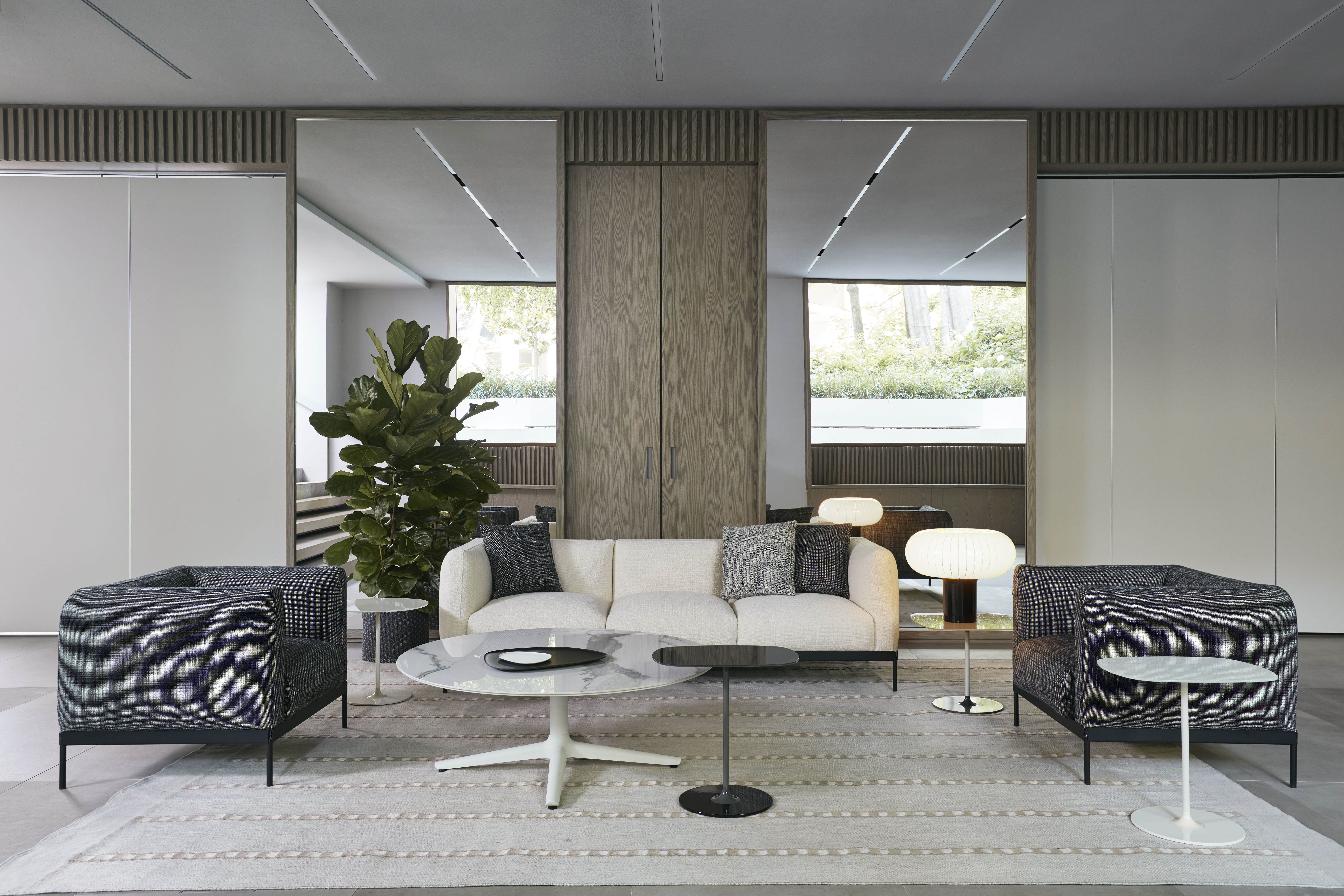 Dalle soluzioni modulari alle sedute avvolgenti, gli imbottiti Kartell costruiscono ambienti dinamici e completi, con versatilità, comfort e sostenibilità