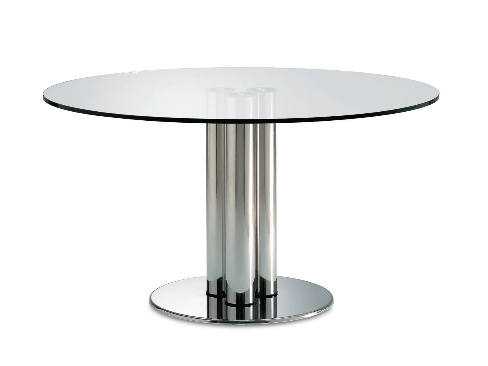 Zanotta riporta in produzione il tavolo Marcuso, disegnato da Marco Zanuso nel 1969, un progetto che mette in relazione acciaio e cristallo attraverso un sistema costruttivo che ancora oggi conserva equilibrio e perfezione. Disponibile anche in versione tonda, conferma come gli arredi in metallo possano attraversare decenni senza perdere attualità.