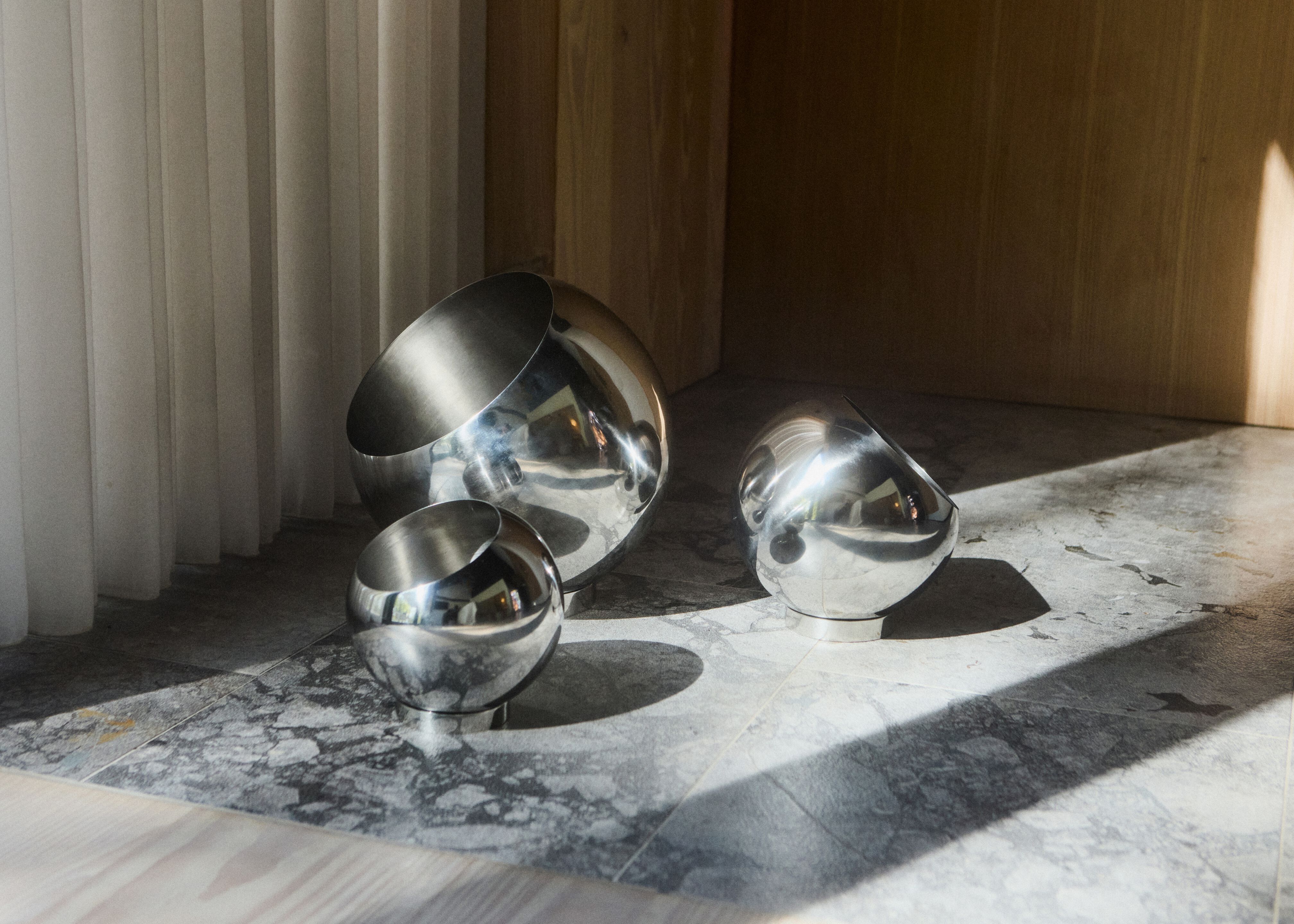 Oltre gli arredi in metallo, anche il décor. GLOBE di AYTM è un vaso da fiori, per interni ed esterni. Il metallo alterna finiture lucide e opache, mantenendo una solidità che non teme il tempo e le intemperie.