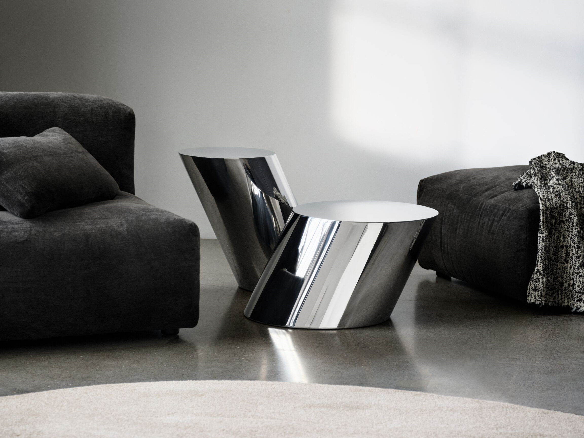 La materia che cattura e modula la luce trasformando lo spazio. Una selezione di arredi in metallo che portano rigore e luminosità negli interni più caldi
